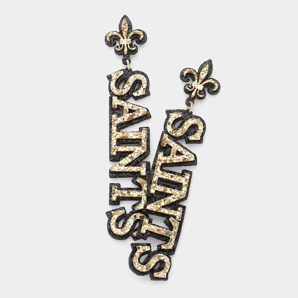 Felt Back Glittered SAINTS Message Fleur de Lis Earrings