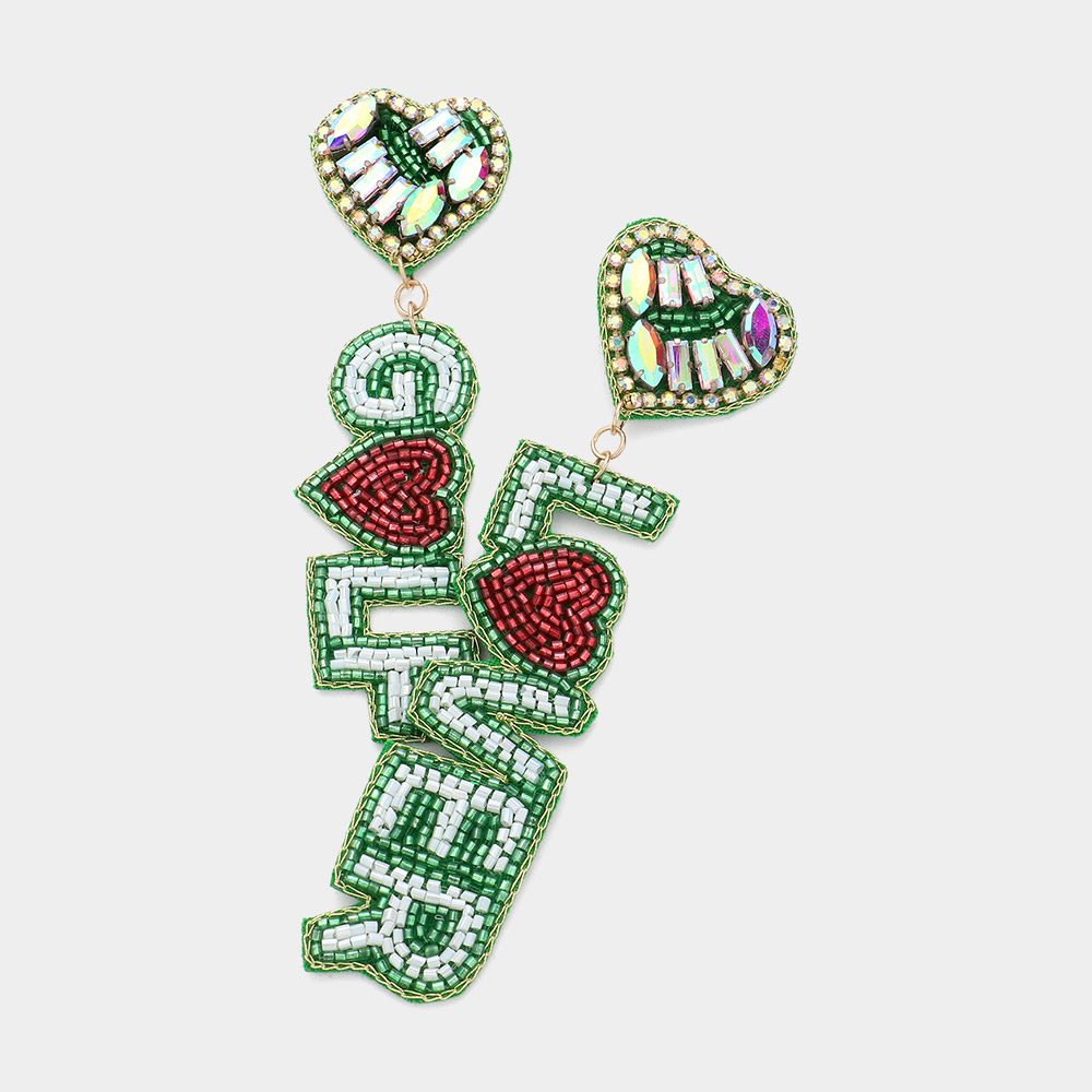 Felt Back GOLF LOVER Message Beaded Dangle Earrings