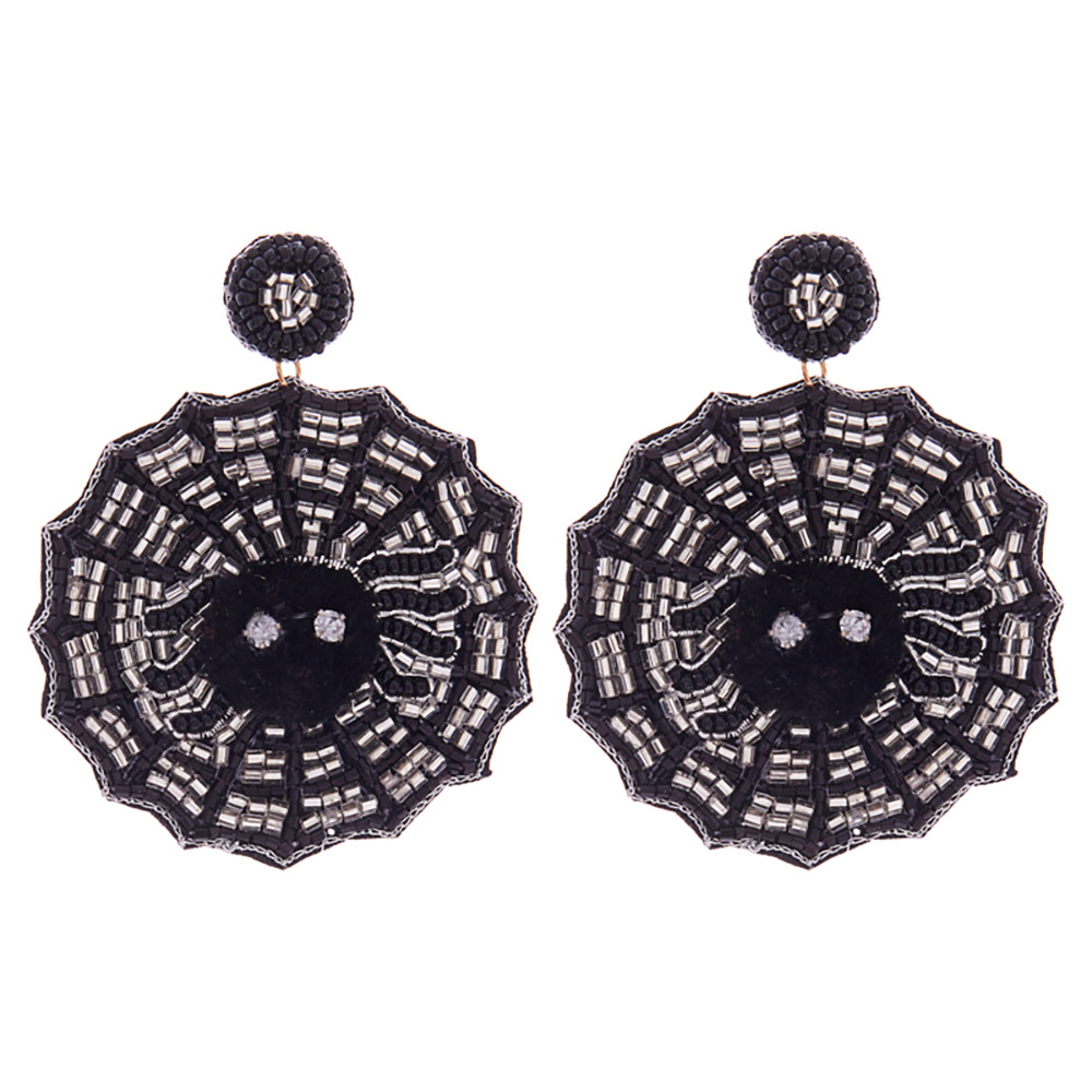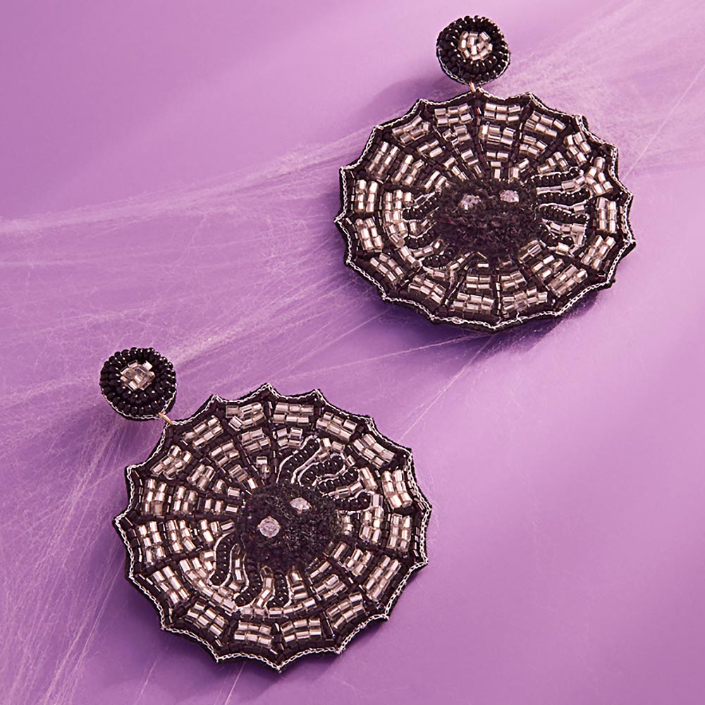 Felt Back Halloween Spider Web Seed Beaded Dangle Earrings