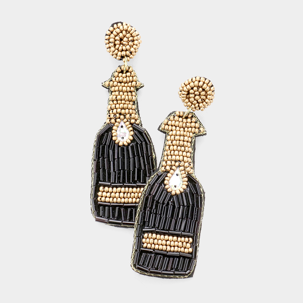 Felt Back Embroidery Hat Beaded Beer Link Dangle Earrings