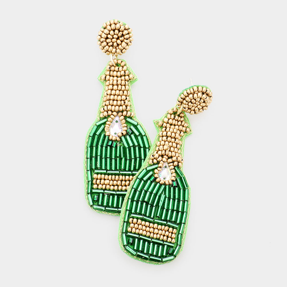 Felt Back Seed Beaded Witch Hat Pumpkin Dangle Earrings