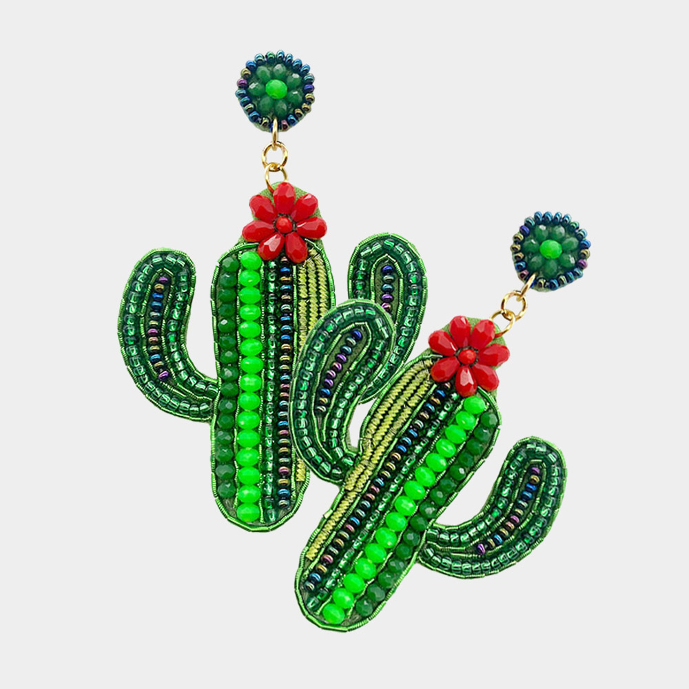 Felt Back Beaded Cactus Drop Dangle Earrings