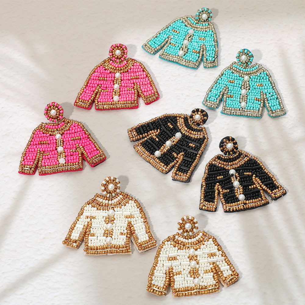 Details • Size : 2" X 2" • Post Back • Playful statement earrings designed in a detailed sweater jacket silhouette with layered texture and dimensional accents. These novelty earrings add charm and personality to seasonal outfits, gift assortments, and boutique collections, making them ideal for trend-driven displays, fashion storytelling, and eye-catching accessory edits. • Lead and Nickel Compliant • Made In India