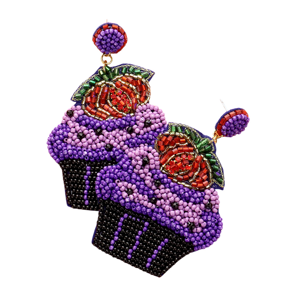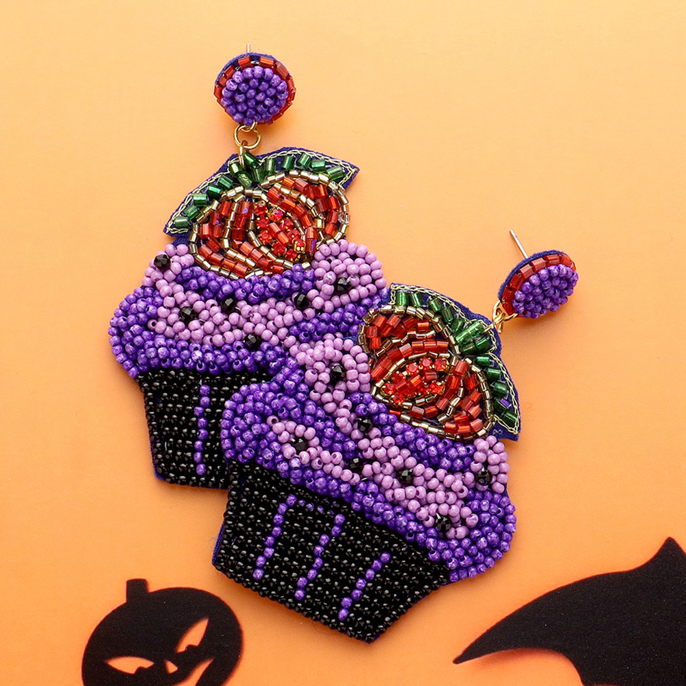 Felt Back Pumpkin Muffin Beaded Dangle Earrings