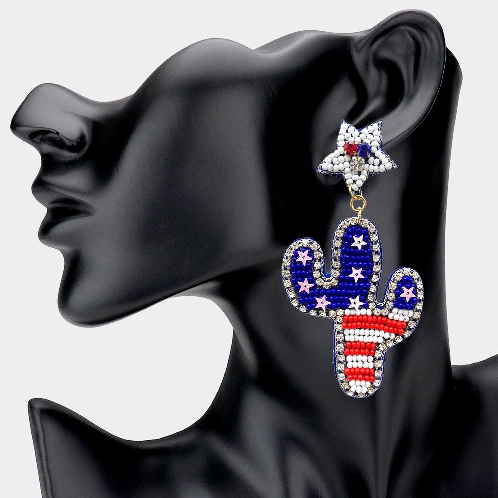 Felt Back Rhinestone Beaded Cactus Dangle Earrings