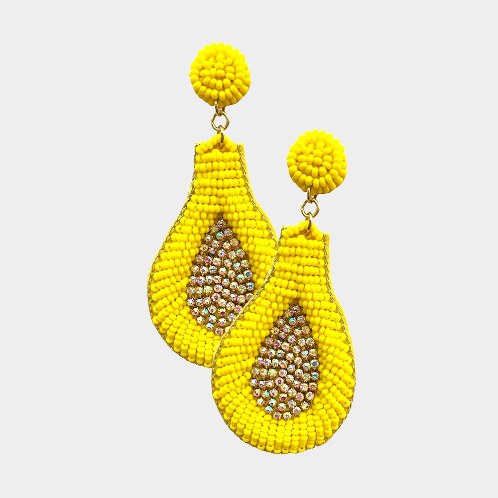 Felt Back Rhinestone Embellished Seed Beaded Teardrop Dangle Earrings