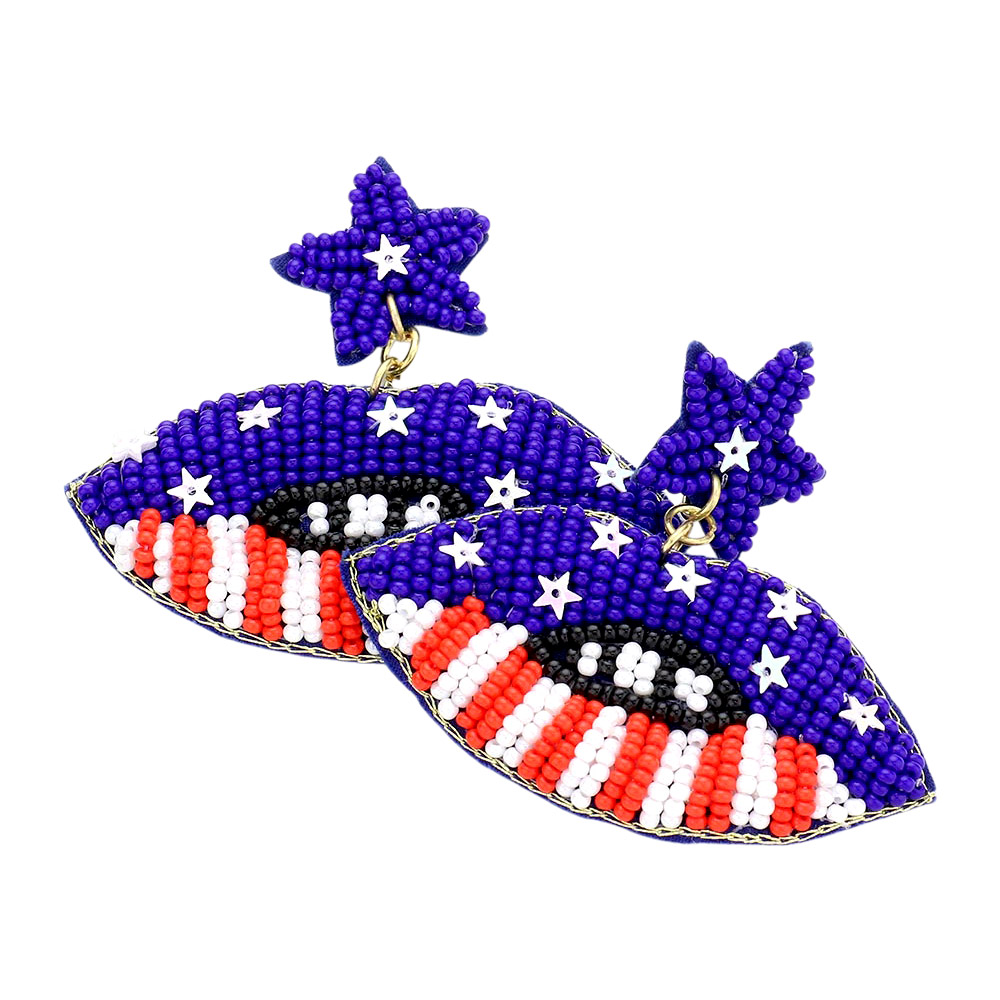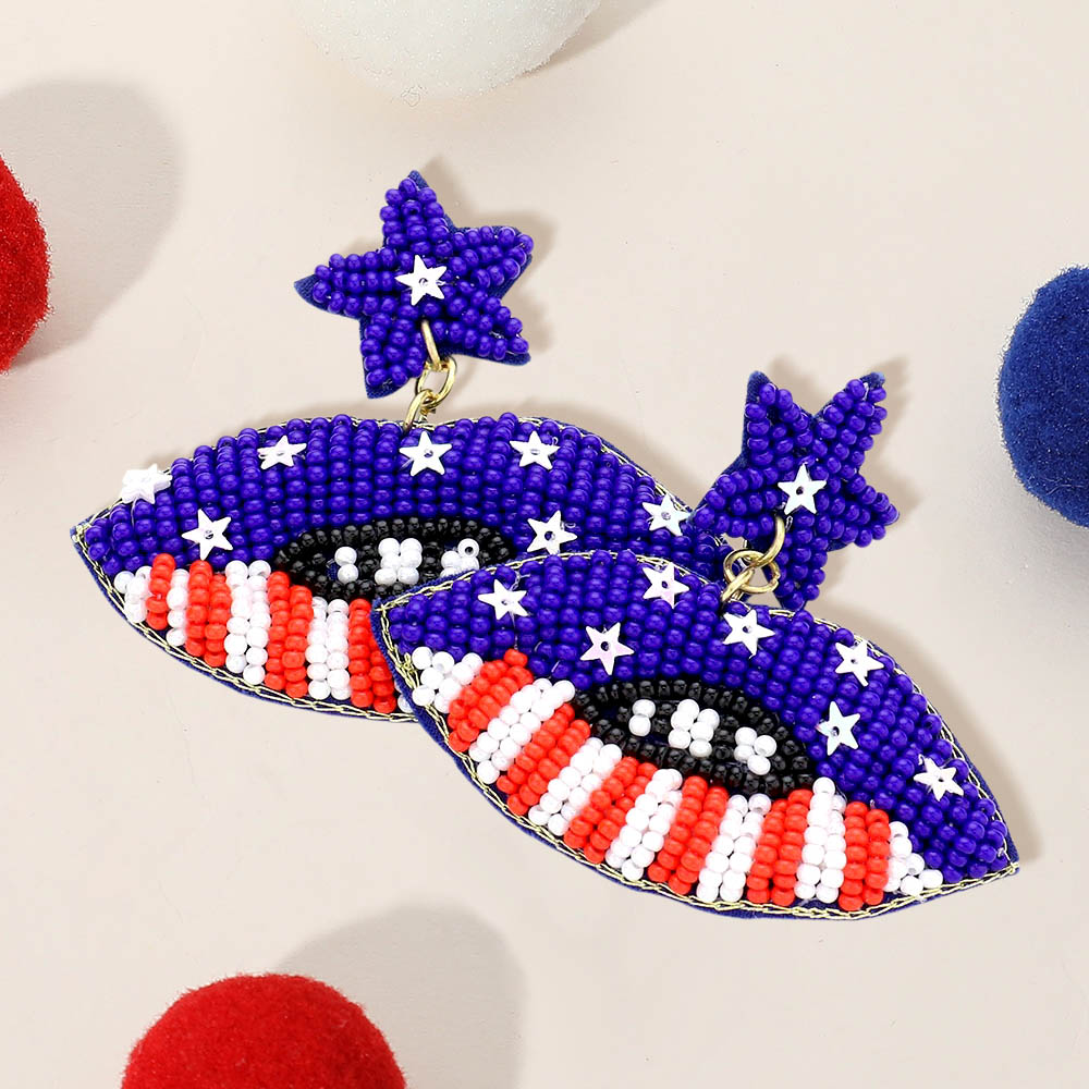 Felt Back Seed Bead Star American USA Flag Lip Dangle Earrings