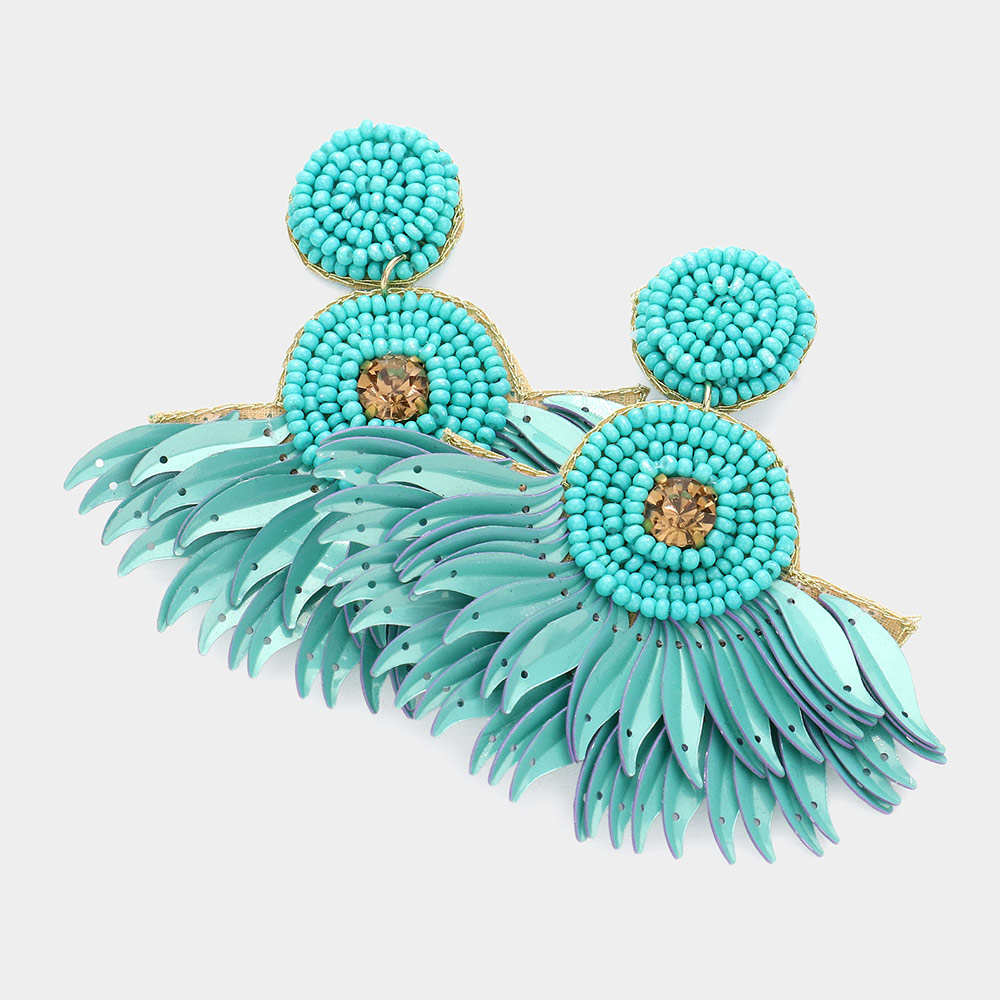 Felt Back Seed Beaded Boho Fringe Dangle Earrings