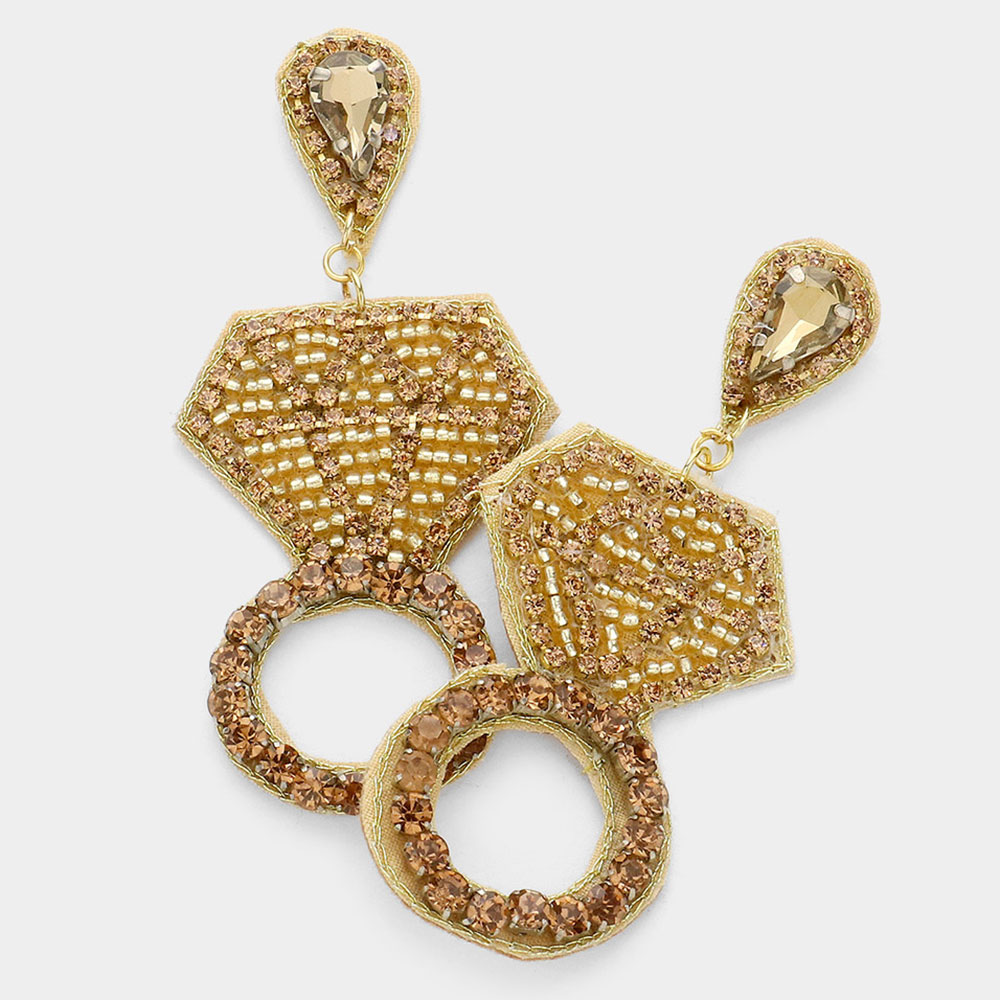 Felt Back Seed Beaded Diamond Ring Dangle Earrings