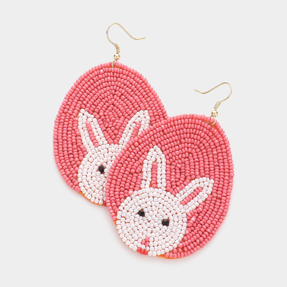 Felt Back Seed Beaded Easter Bunny Accented Egg Dangle Earrings