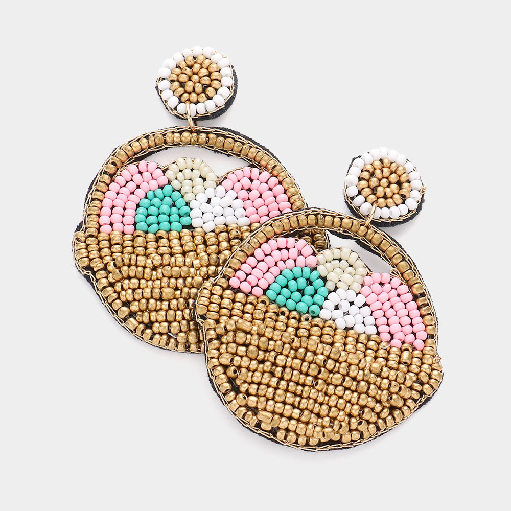 Felt Back Seed Beaded Easter Egg Basket Dangle Earrings