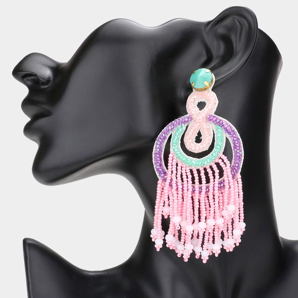 Felt Back Seed Beaded Fringe Dangle Earrings