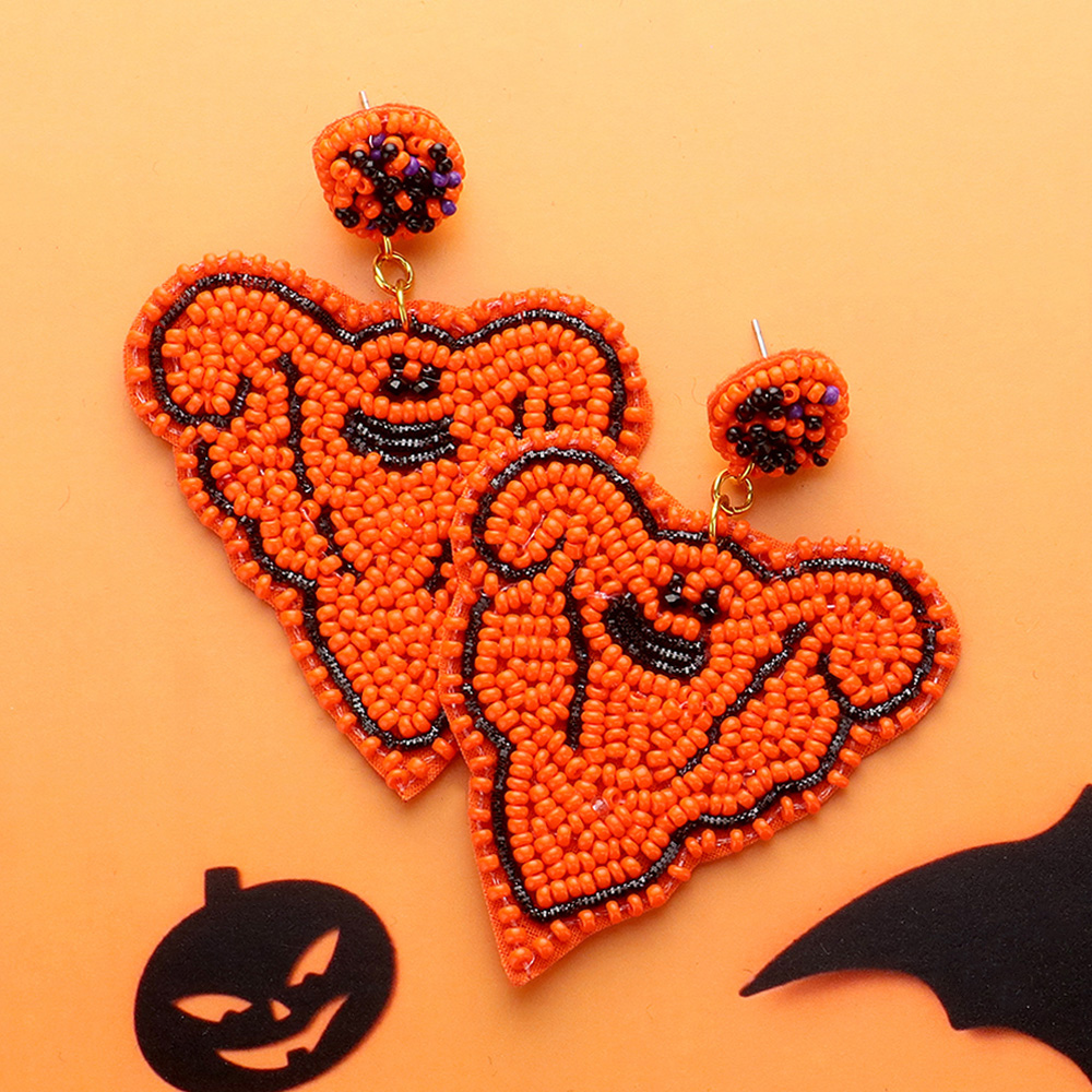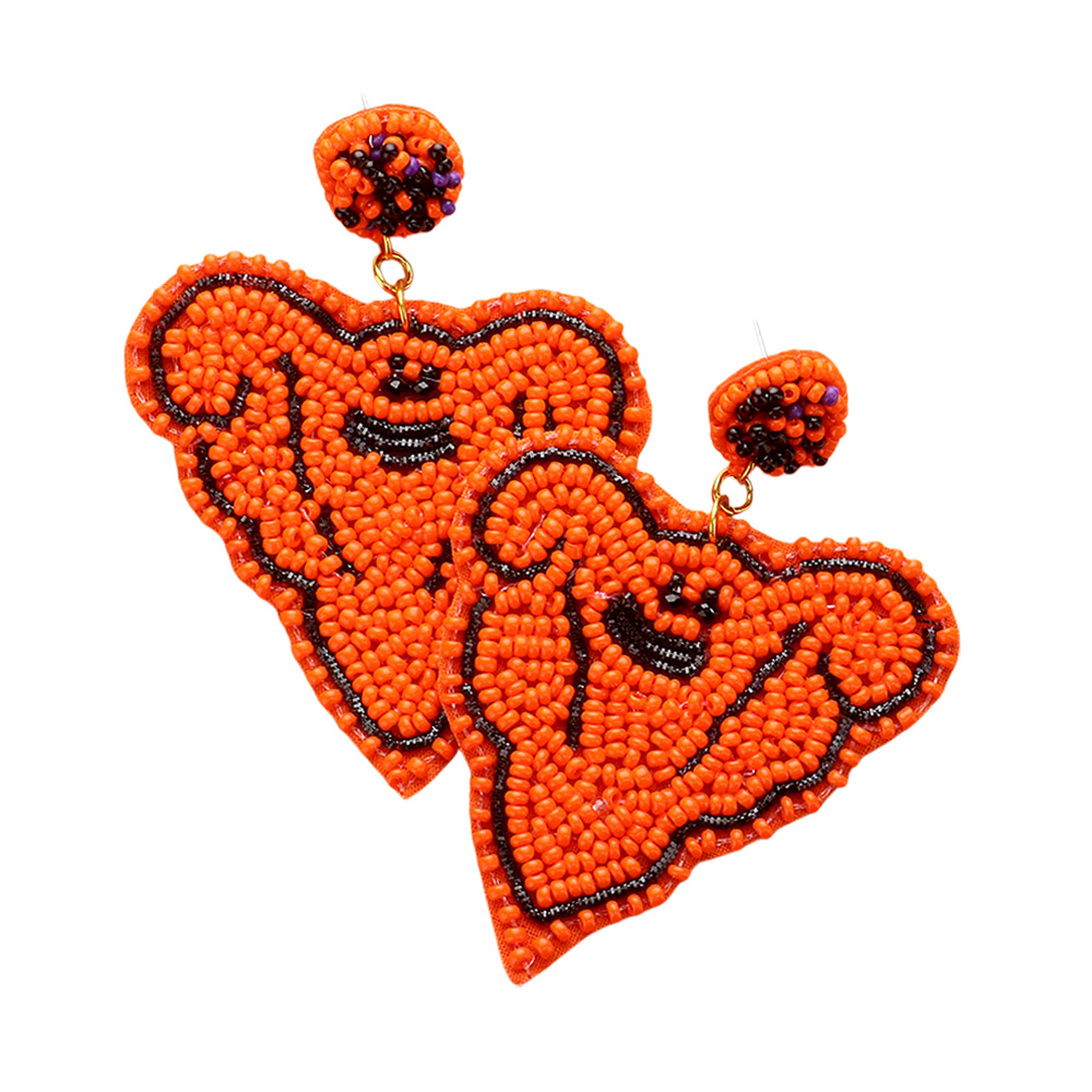 Felt Back Seed Beaded Ghost Dangle Earrings