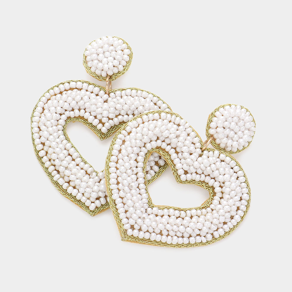 Felt Back Seed Beaded Open Heart Dangle Earrings