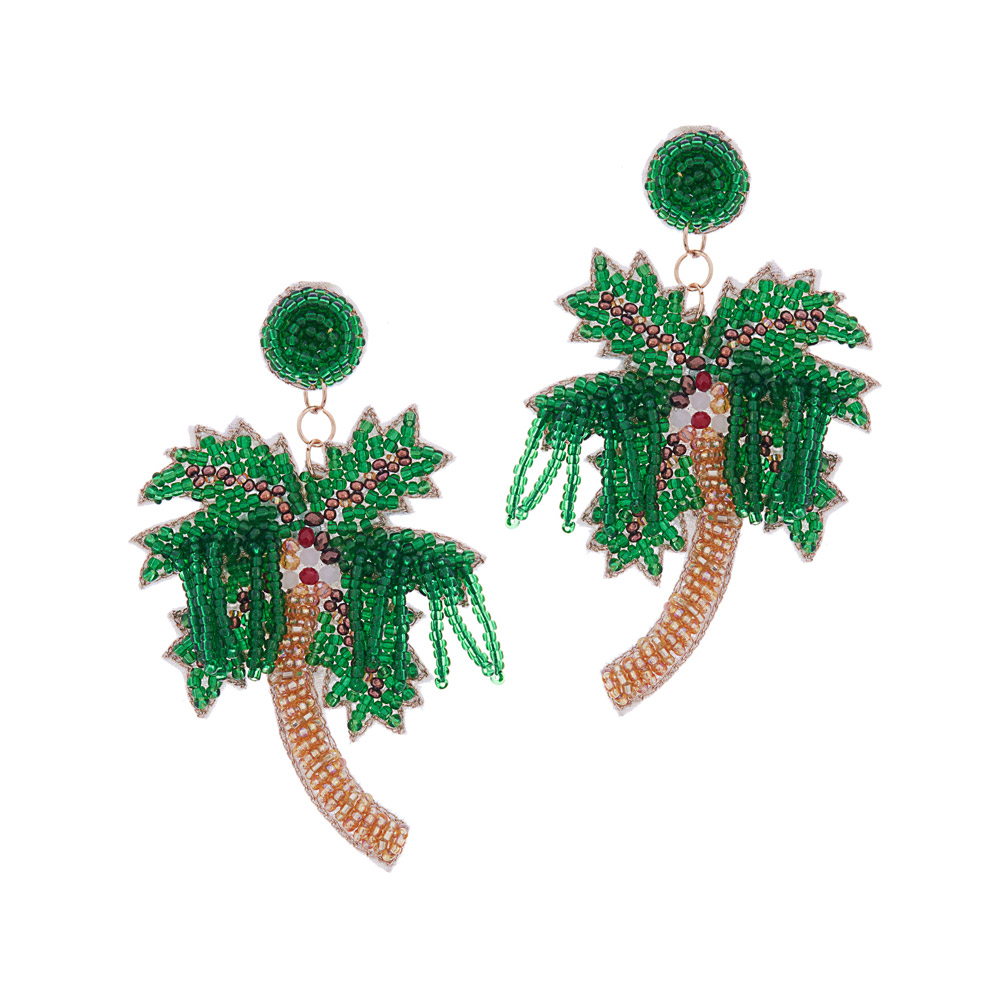 Felt Back Seed Beaded Palm Tree Dangle Earrings