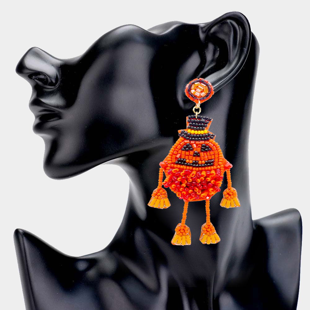 Felt Back Seed Beaded Pumpkin Dangle Earrings