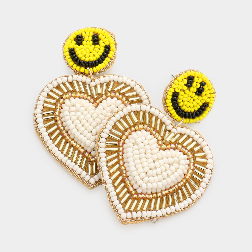 Felt Back Seed Beaded Smile Heart Link Dangle Earrings
