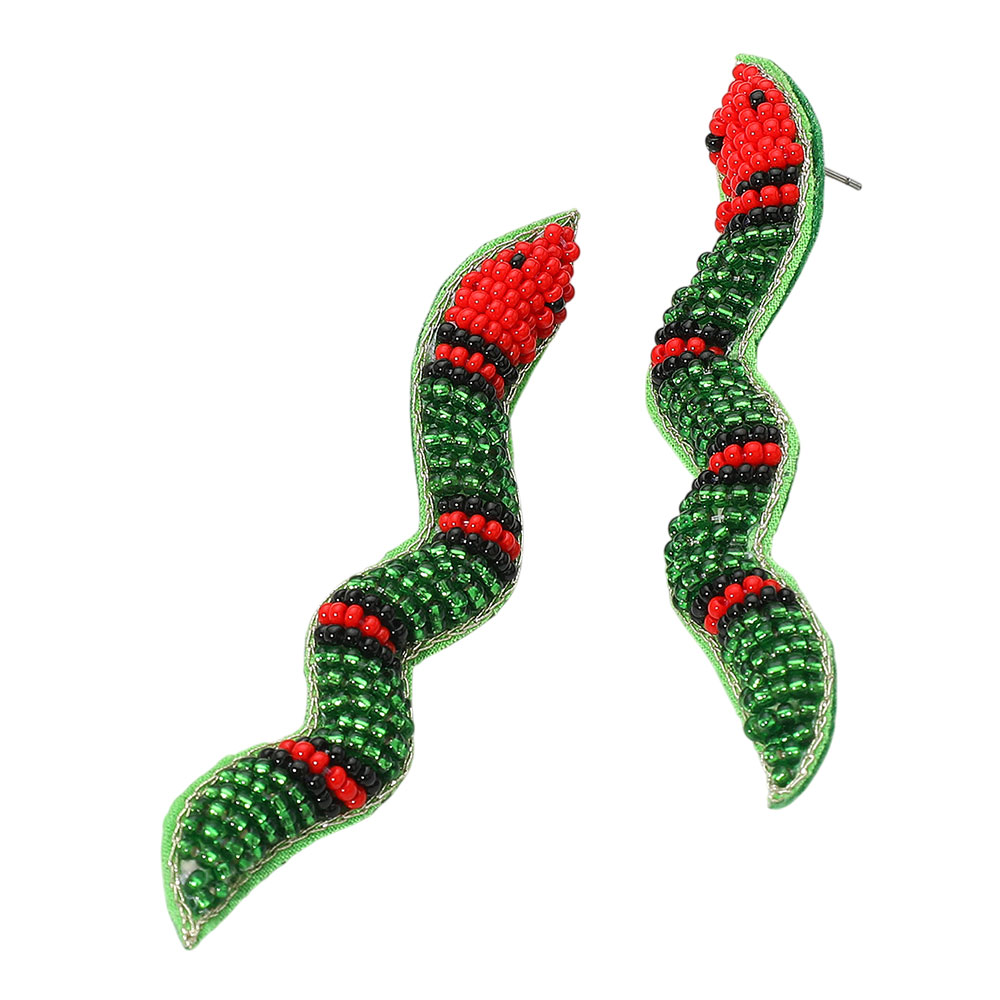 Felt Back Seed Beaded Snake Earrings