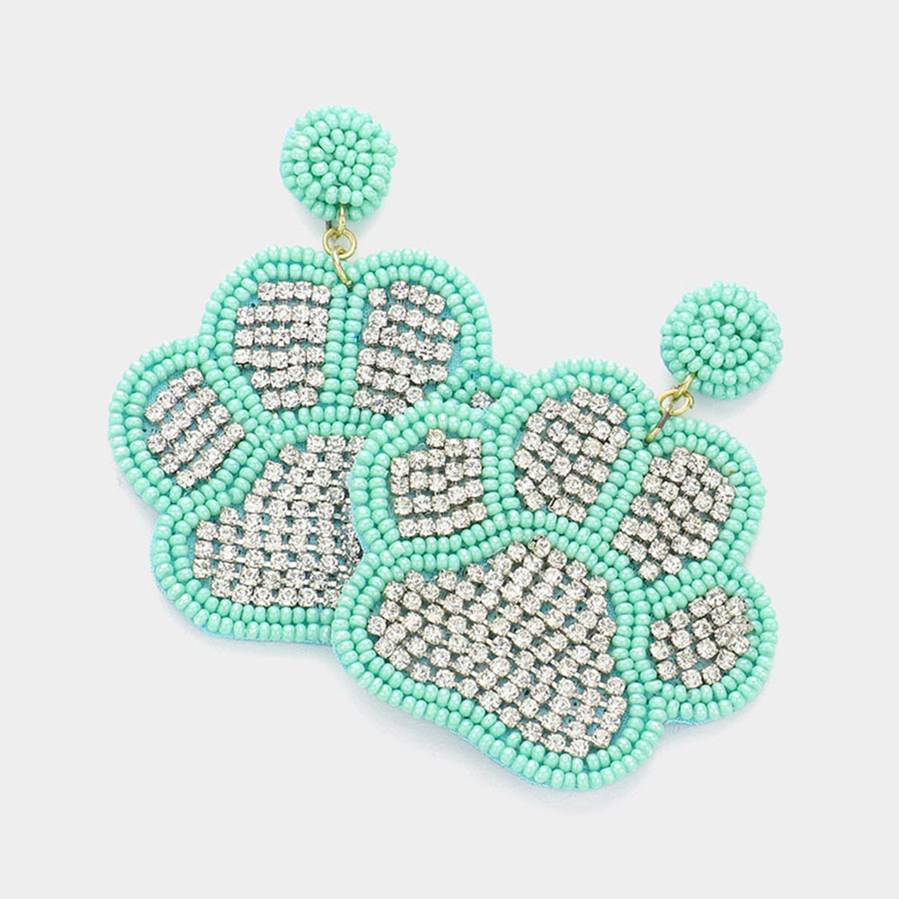 Felt Back Seed Beaded Trimmed Bling Paw Dangle Earrings