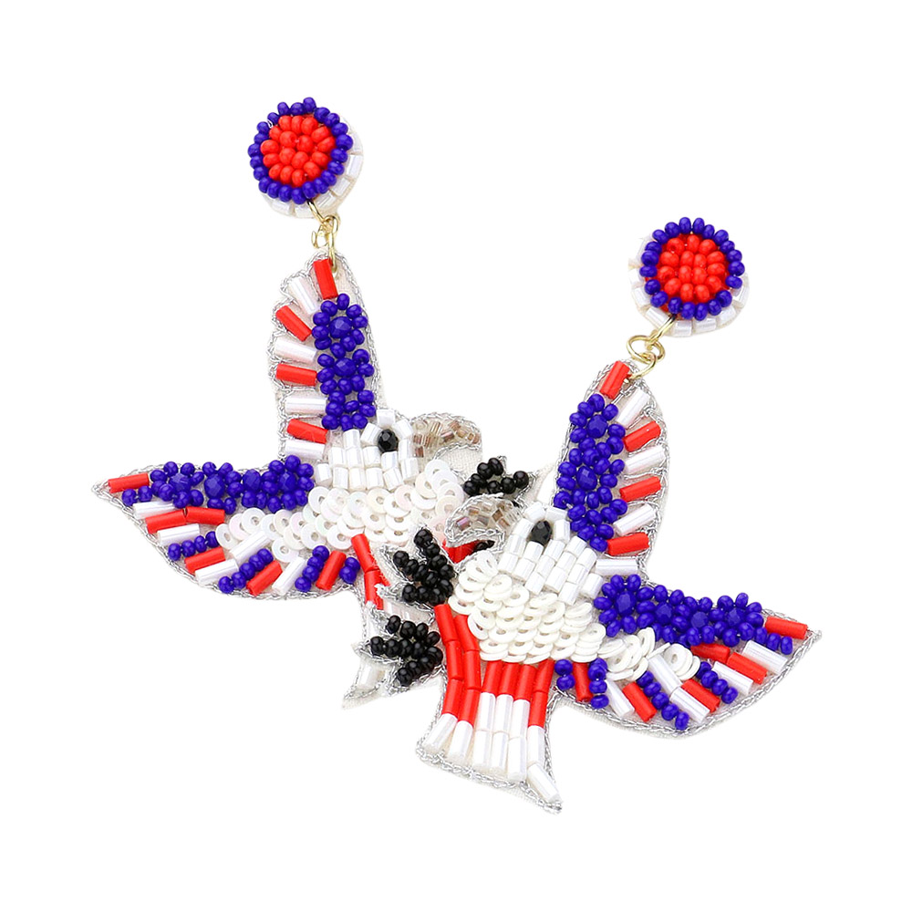 Felt Back Sequin Beaded Eagle Link Dangle Earrings