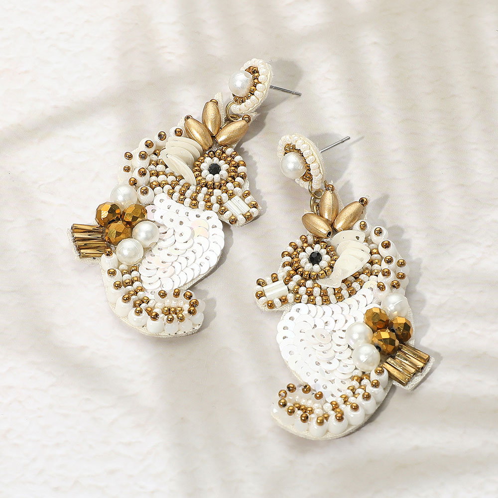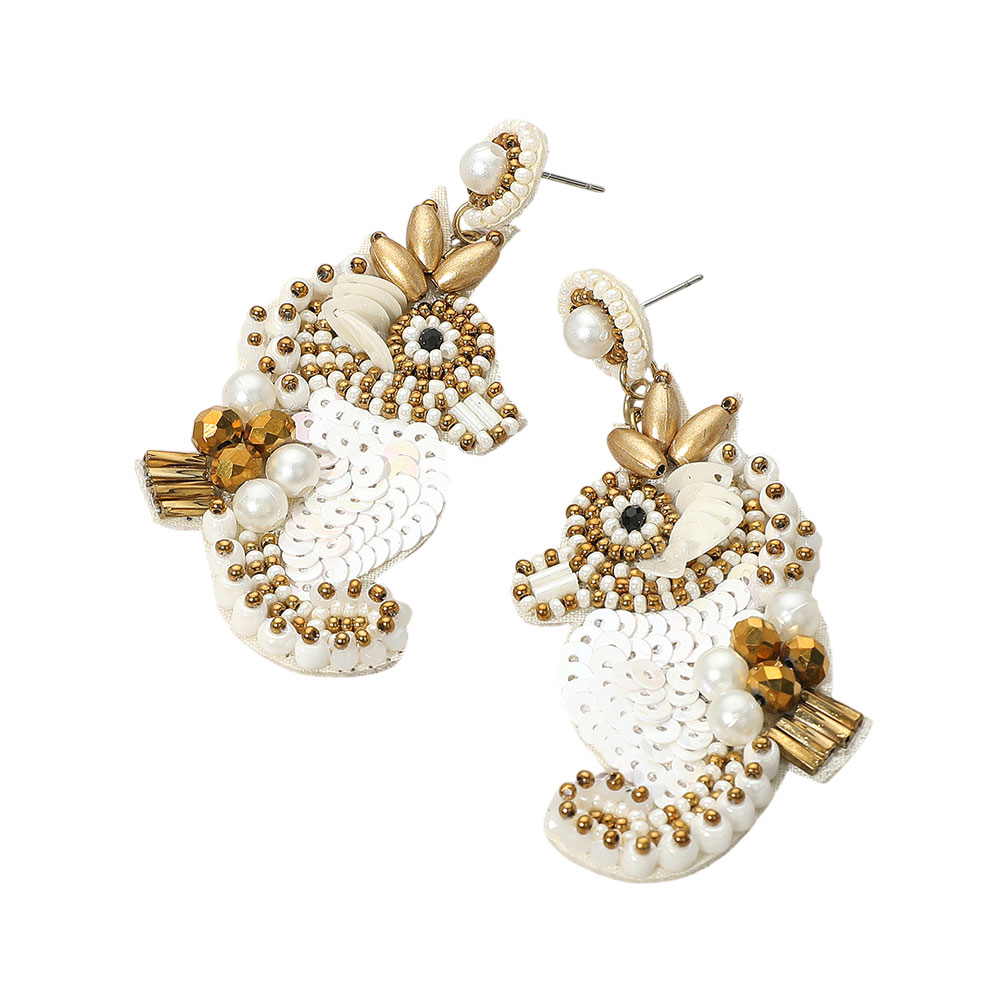 Felt Back Sequin Pearl Seed Beaded Seahorse Dangle Earrings