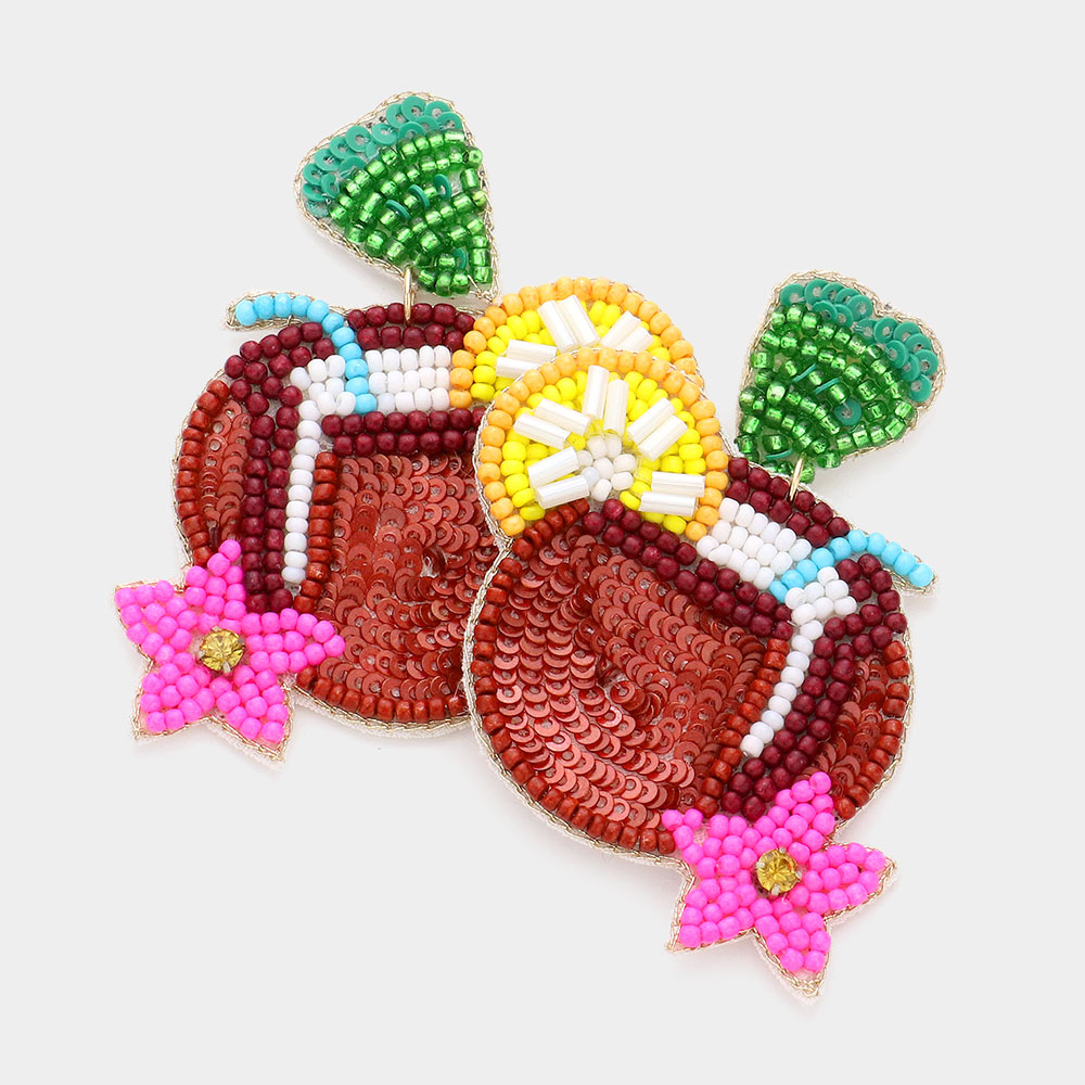 Felt Back Sequin Seed Beaded Heart Coconut Lemon Dangle Earrings