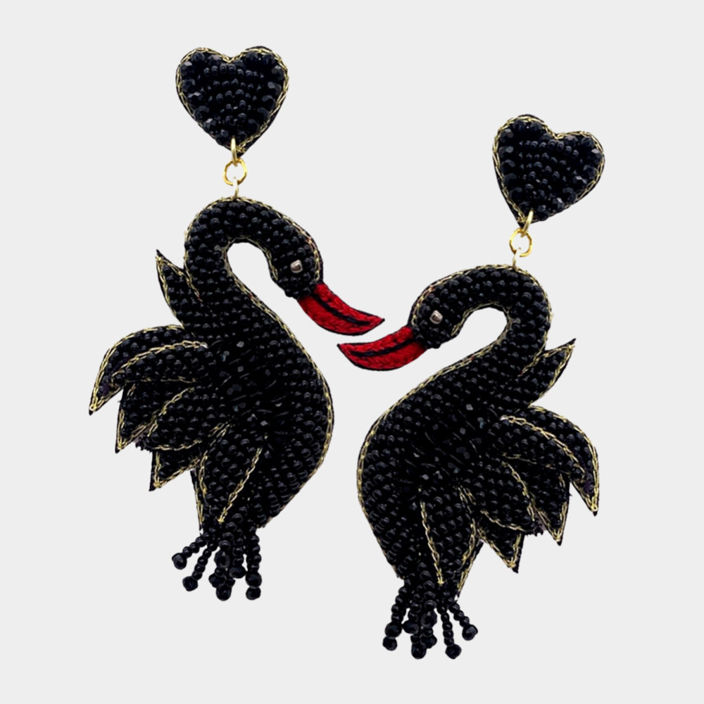 Felt Back Sequin Seed Beaded Swan Dangle Earrings