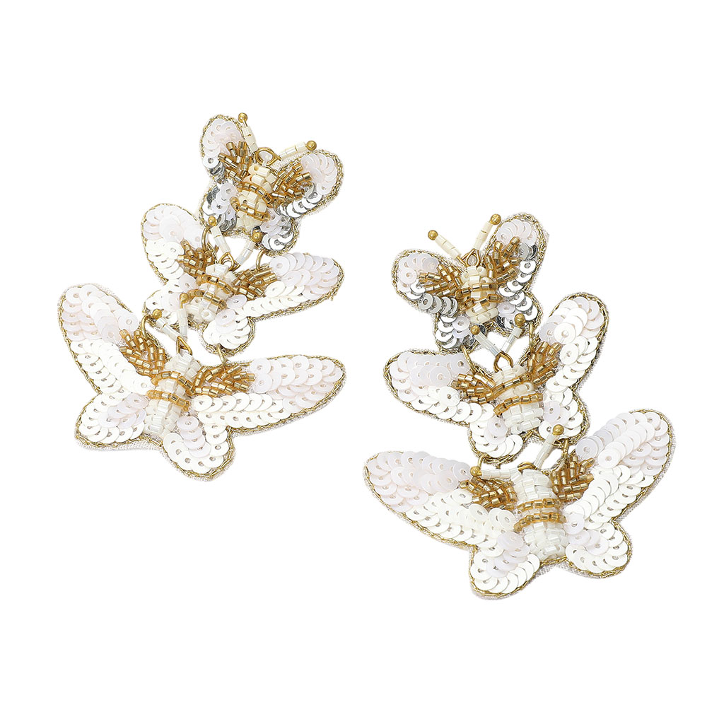 Felt Back Sequin Triple Butterfly Link Dangle Earrings
