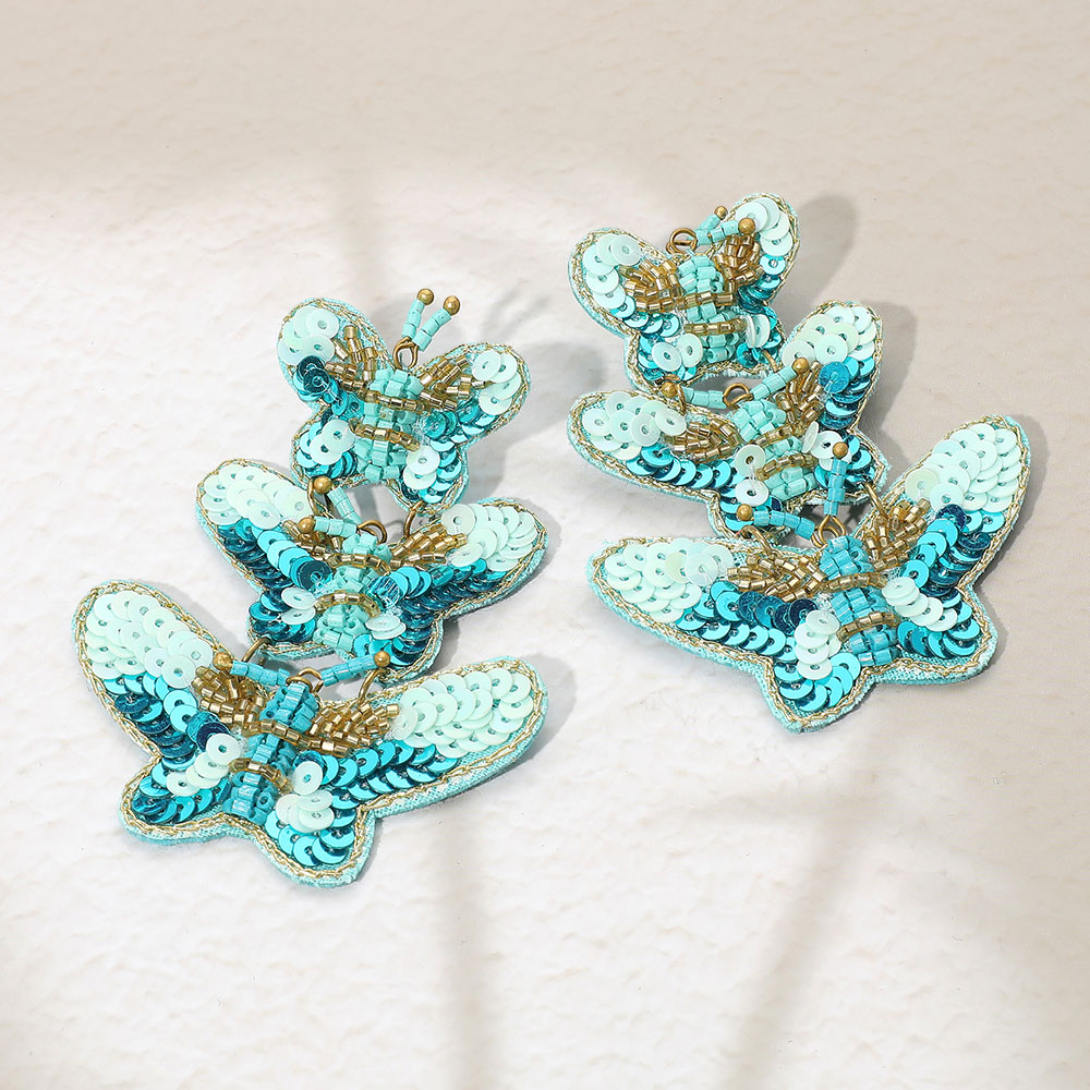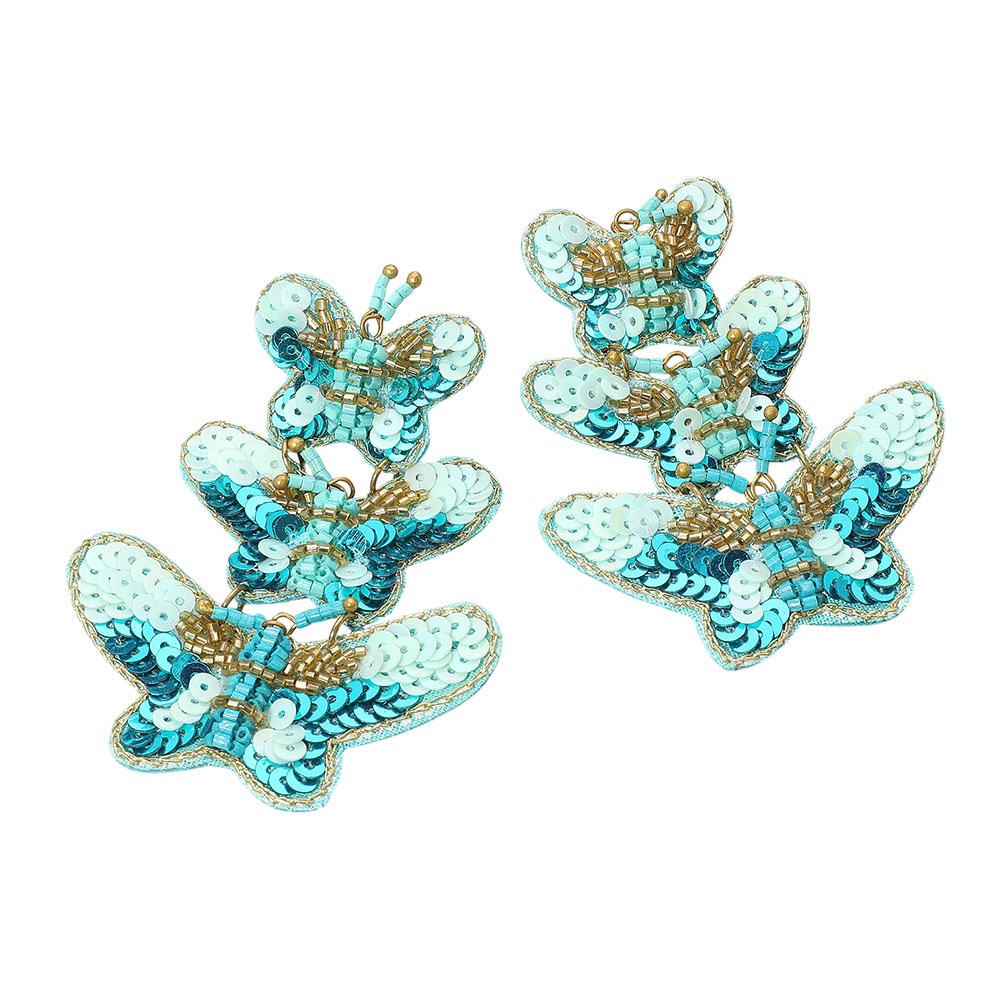 Felt Back Sequin Triple Butterfly Link Dangle Earrings