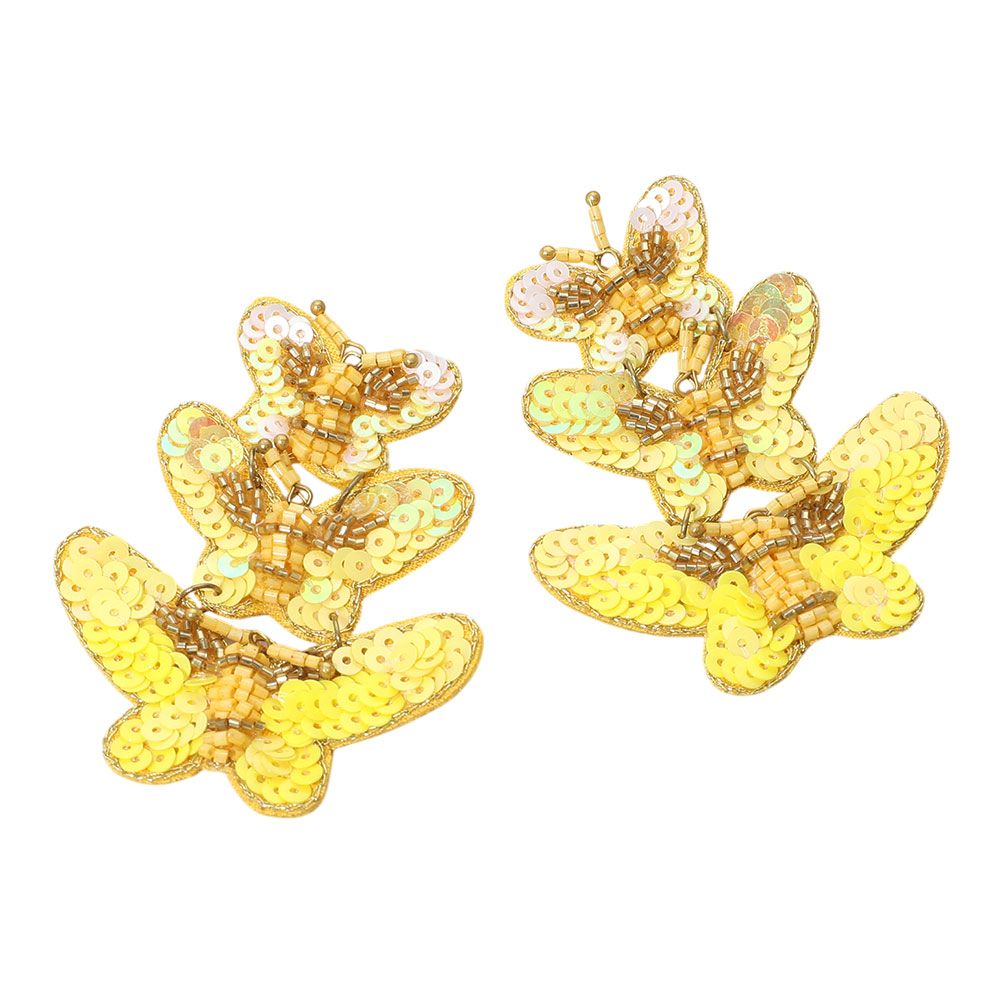 Felt Back Sequin Triple Butterfly Link Dangle Earrings