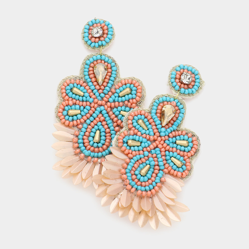 Pearl Centered Multi Stone Bead Cluster Stud Earrings