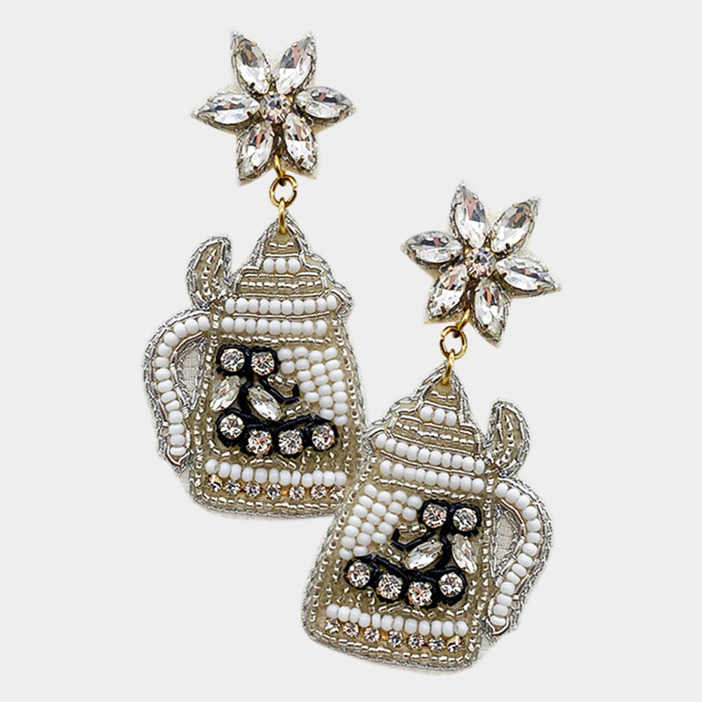 Felt Back Stone Beaded Kettle Dangle Earrings