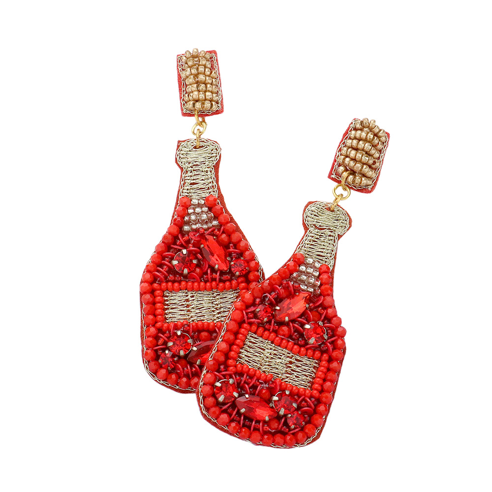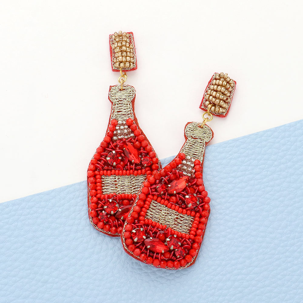 Felt Back Seed Beaded Champagne Dangle Earrings