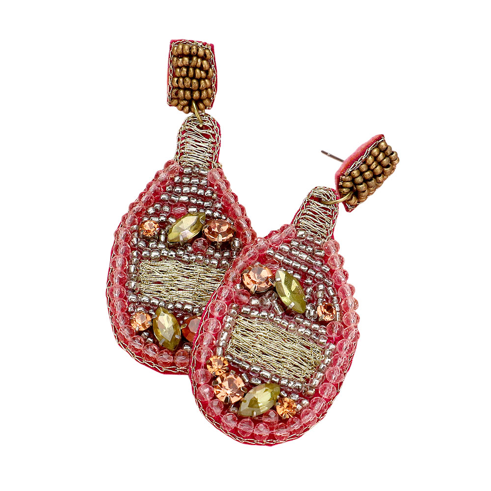 Felt Back Stone Multi Beaded Champagne Dangle Earrings
