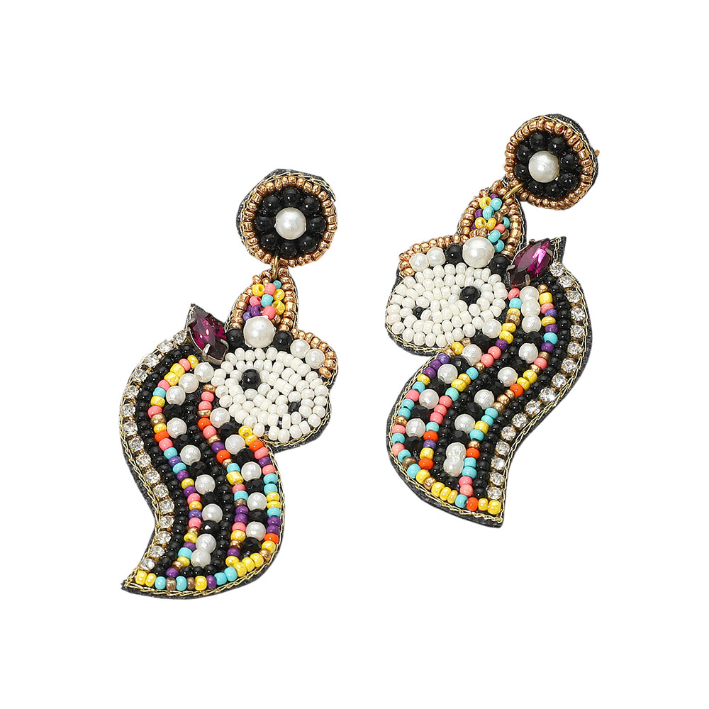 Felt Back Unicorn Beaded Dangle Earrings