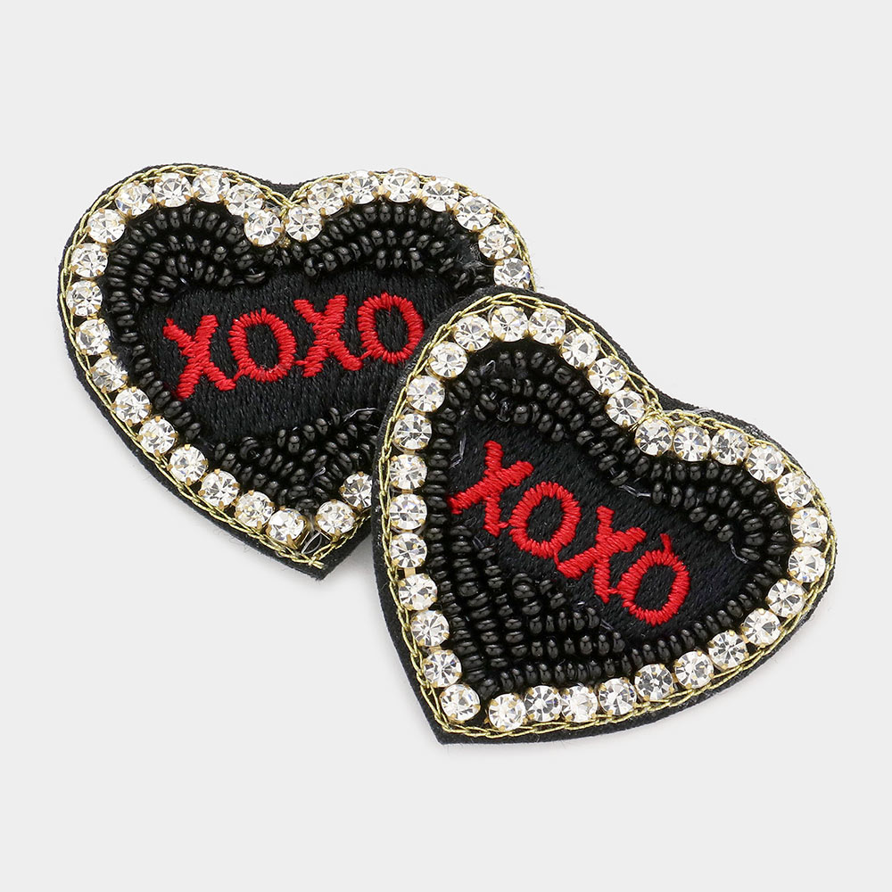 Felt Back XOXO Message Embroidered Seed Bead Stone Embellished Earrings