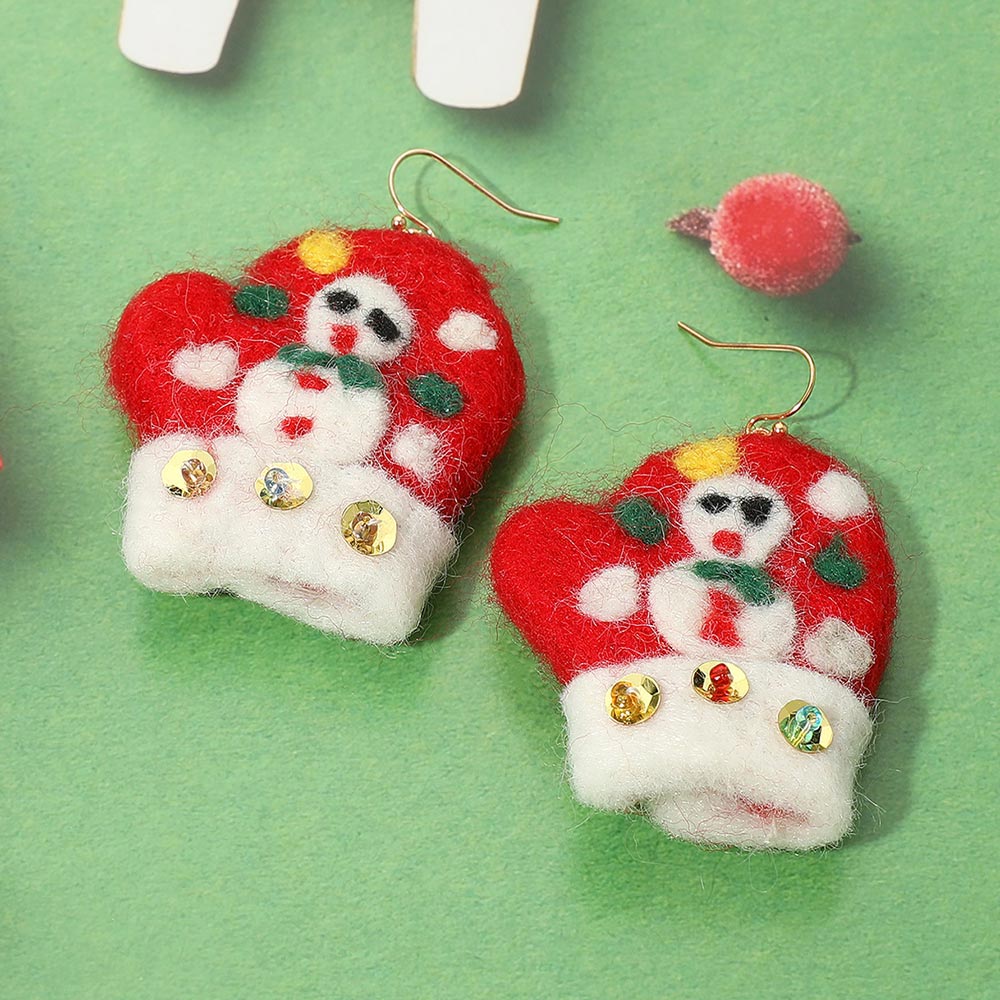 Details • Size : 2" X 2.75" • Fish Hook Back • Celebrate the season with these unique mitten-shaped earrings adorned with cheerful snowmen and sparkling embellishments. A whimsical accessory perfect for spreading holiday cheer at parties, events, or festive outings. • Lead and Nickel Compliant