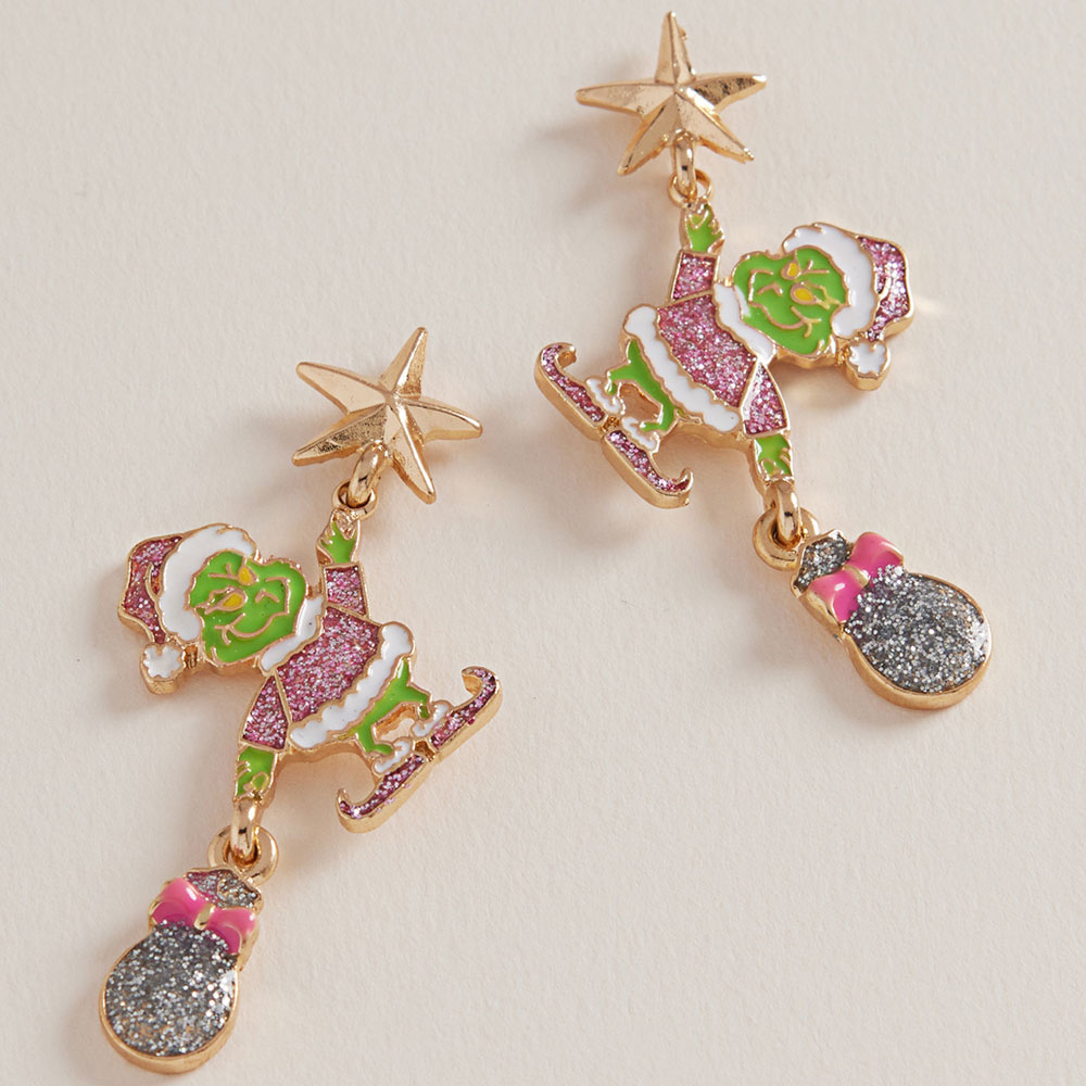 Festive Holiday Grinch Drop Earrings Festive Holiday Grinch Drop Earrings