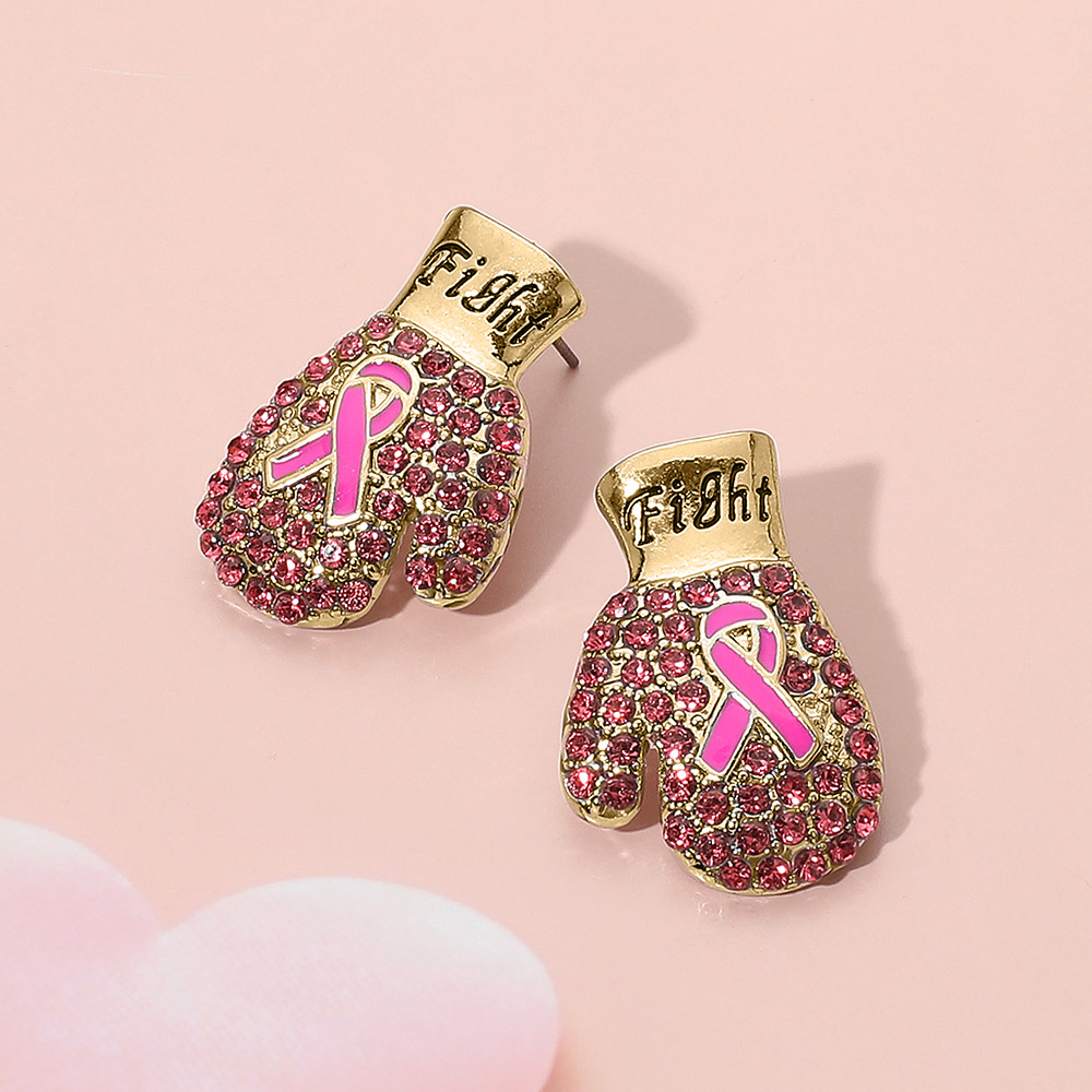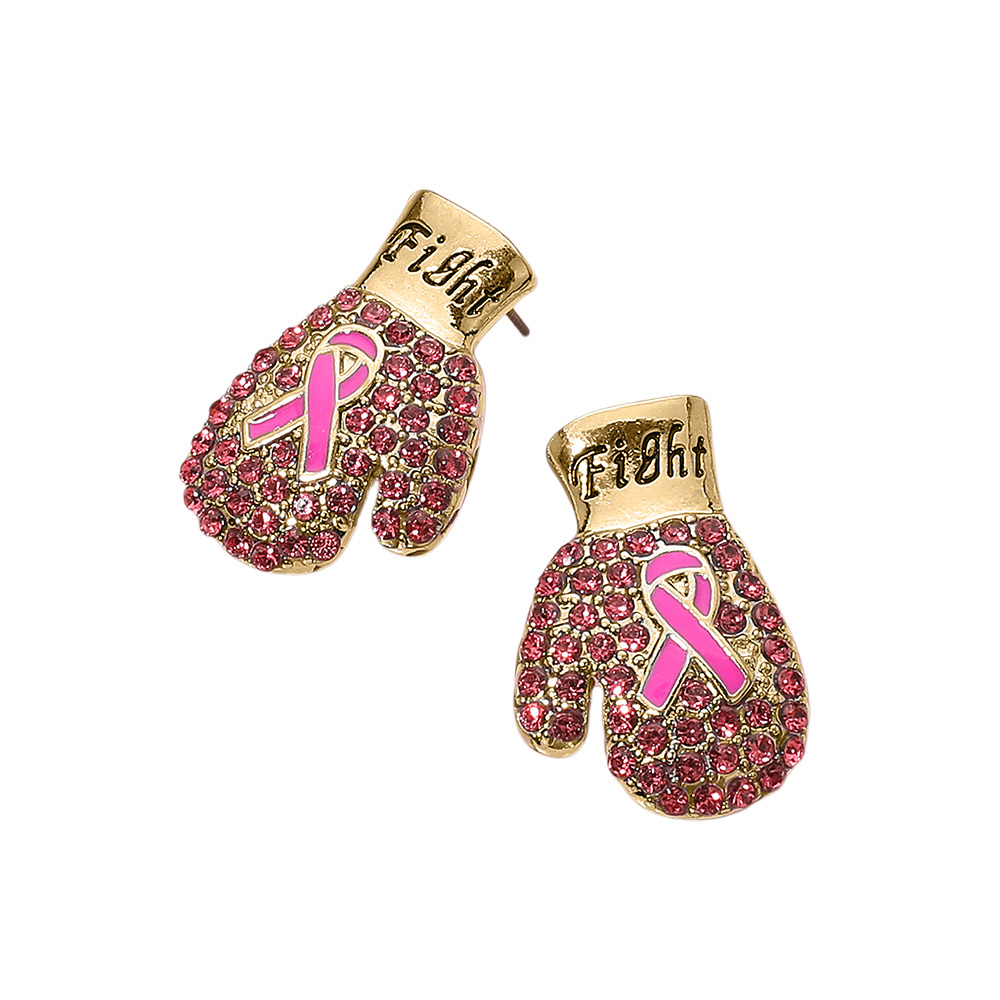 Fight Message Stone Paved Pink Ribbon Boxing Glove Earrings