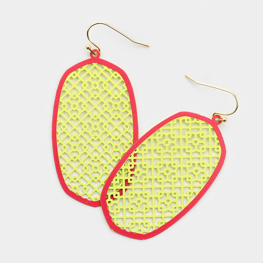 12Pairs - Metal Filigree Leaf Dangle Earrings