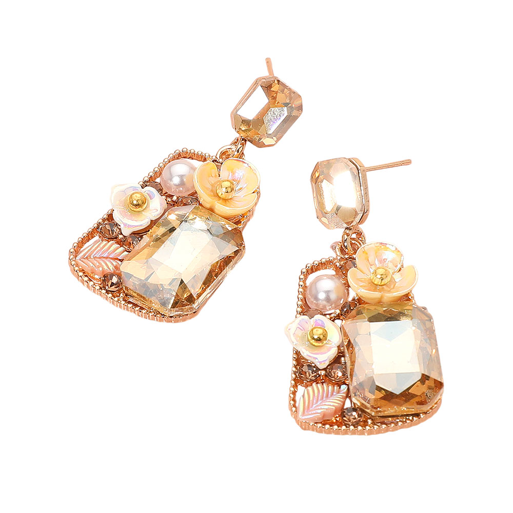 • Charming drop earrings featuring faceted crystals surrounded by petite enamel flowers, pearl accents, and delicate leaf motifs. The intricate detailing and radiant finish make these earrings a stunning choice for weddings, parties, or elegant evening looks.
