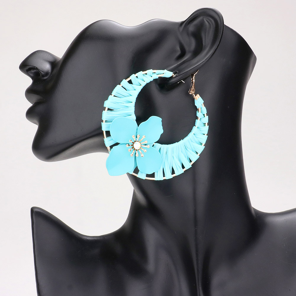 Flower Faceted Beads Wrapped Teardrop Dangle Earrings