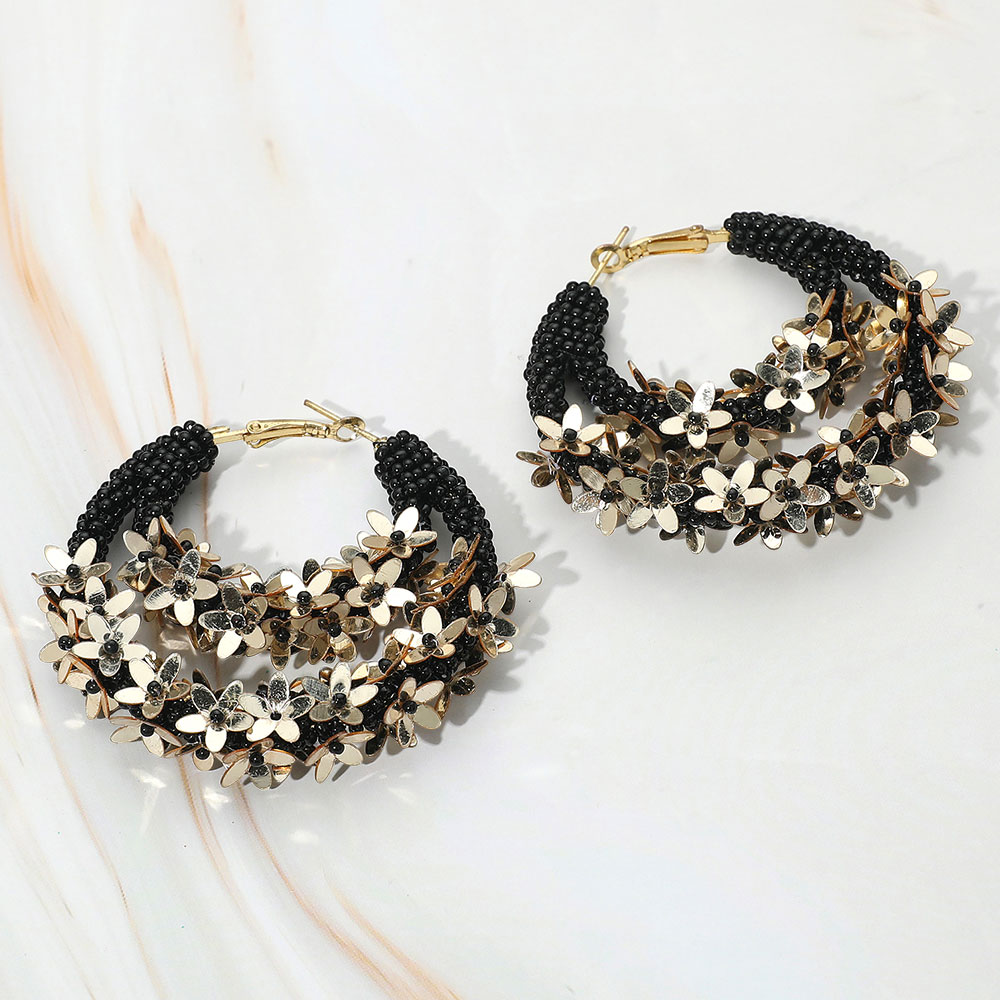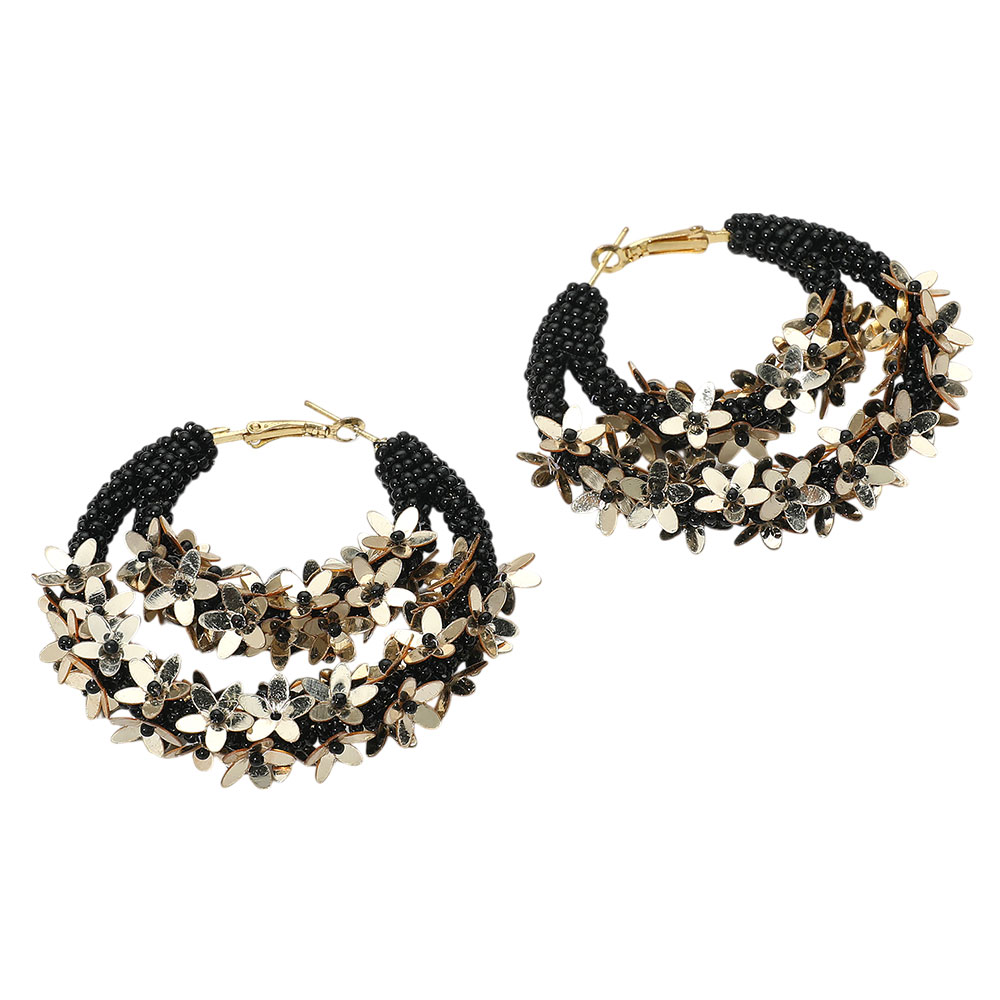 Details • Size : 2.5" X 2.5" • Omega Closure • These beaded floral hoop earrings feature layered strands accented with delicate flowers, creating a bold and stylish design. Perfect for casual outfits, parties, or vacations, they add a touch of charm and elegance, making them a versatile accessory for everyday wear or special occasions. • Lead and Nickel Compliant • Made In India