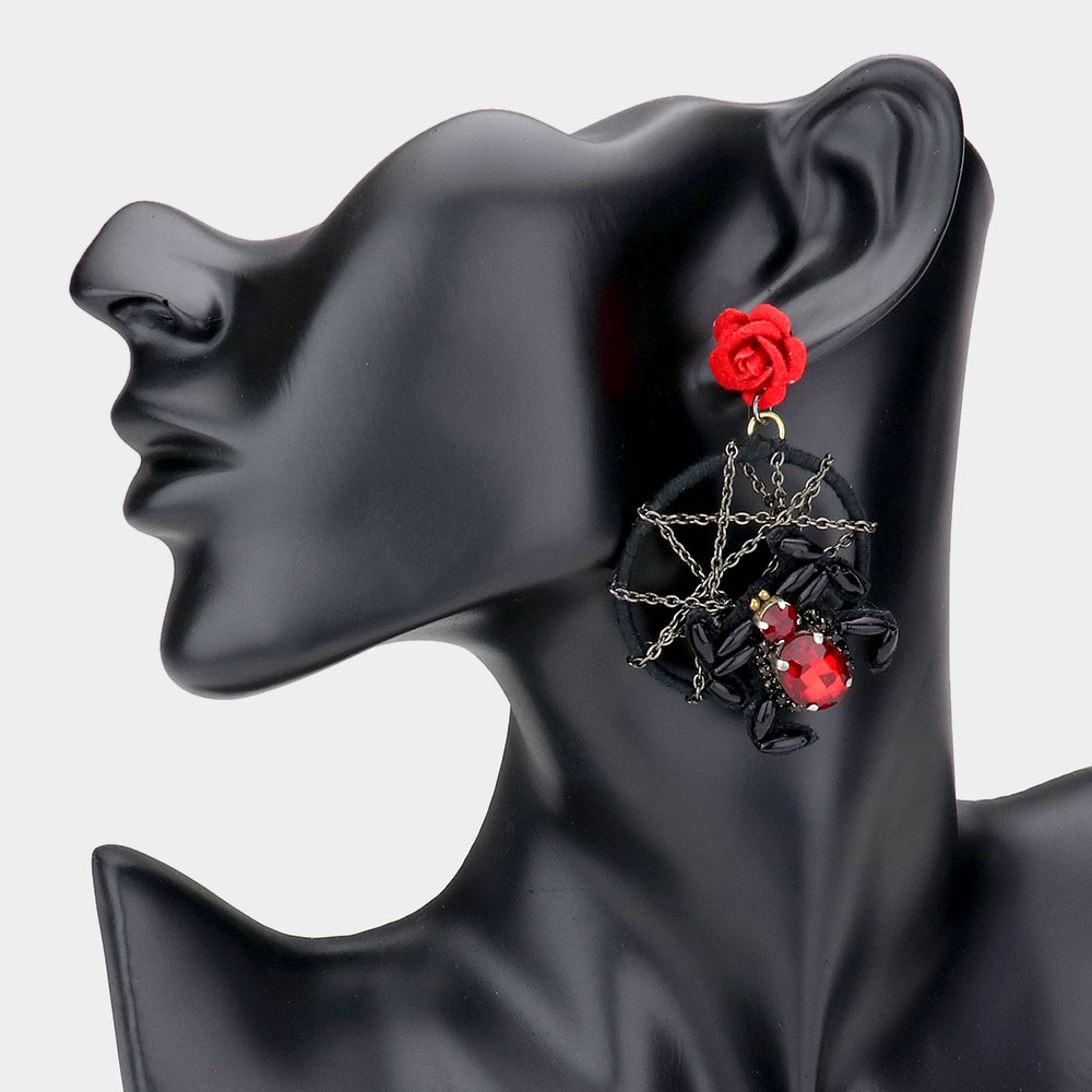 Flower Cobweb Stone Spider Link Dangle Earrings