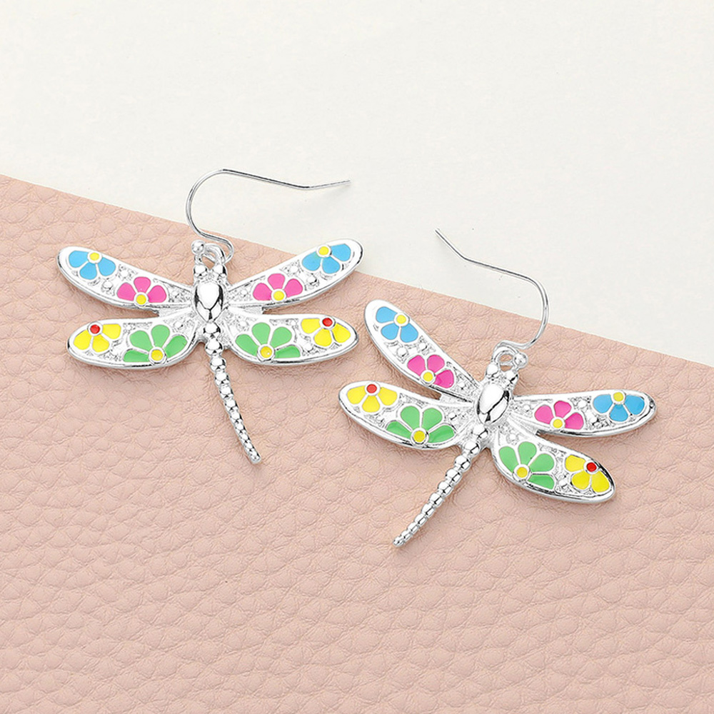 Details • Size : 1.4" X 1.5" • Fish Hook Back • Elegant dragonfly dangle earrings featuring intricate wing patterns and a lightweight design. Perfect for adding a whimsical and nature-inspired accent to everyday wear or special occasions, these earrings bring charm and grace to any jewelry collection. • Lead and Nickel Compliant