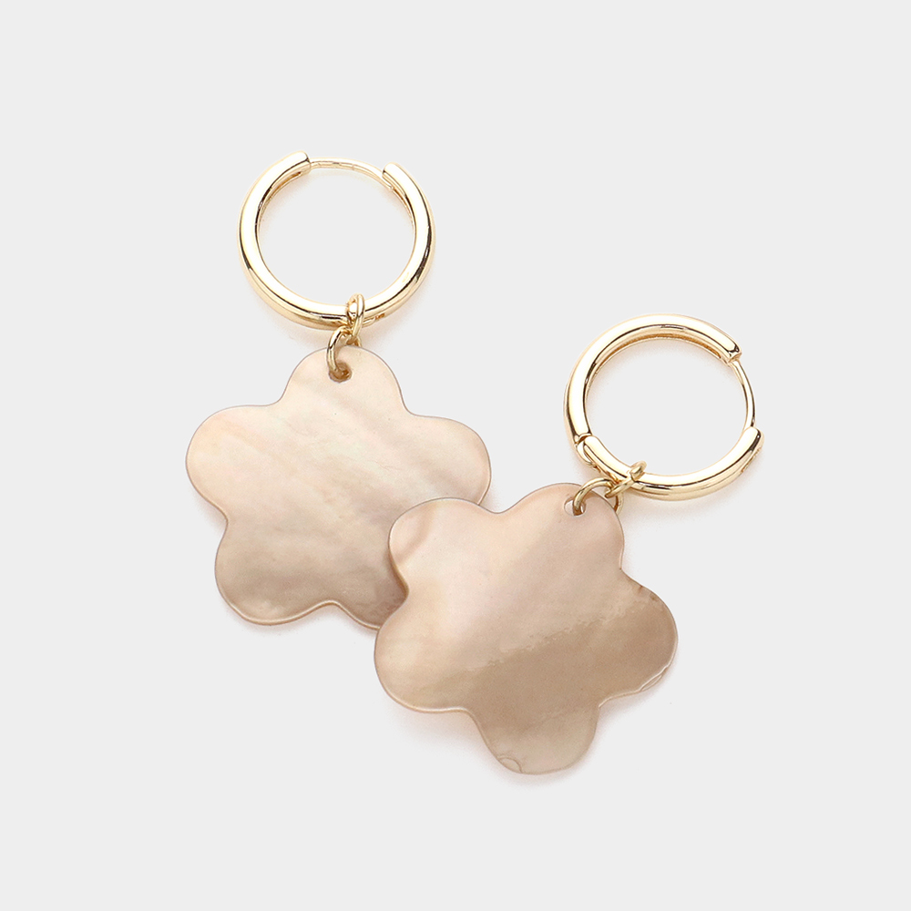 Mother Of Pearl Flower Pointed Dangle Huggie Earrings