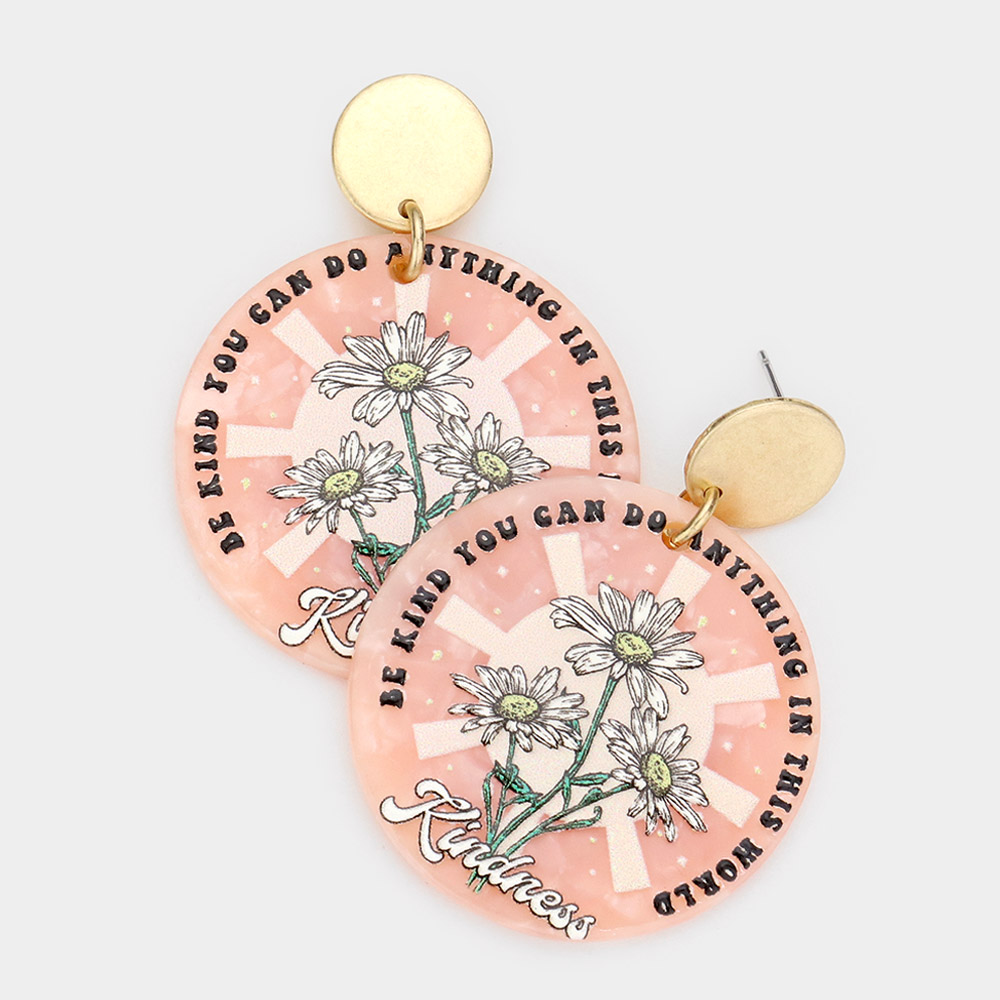 Oversized Enamel Painted Rim Hammered Metal Flower Earrings