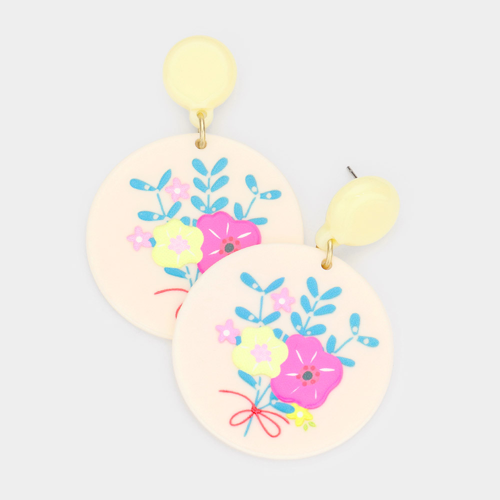 Girl Cheetah Leaf Printed Resin Round Dangle Earrings