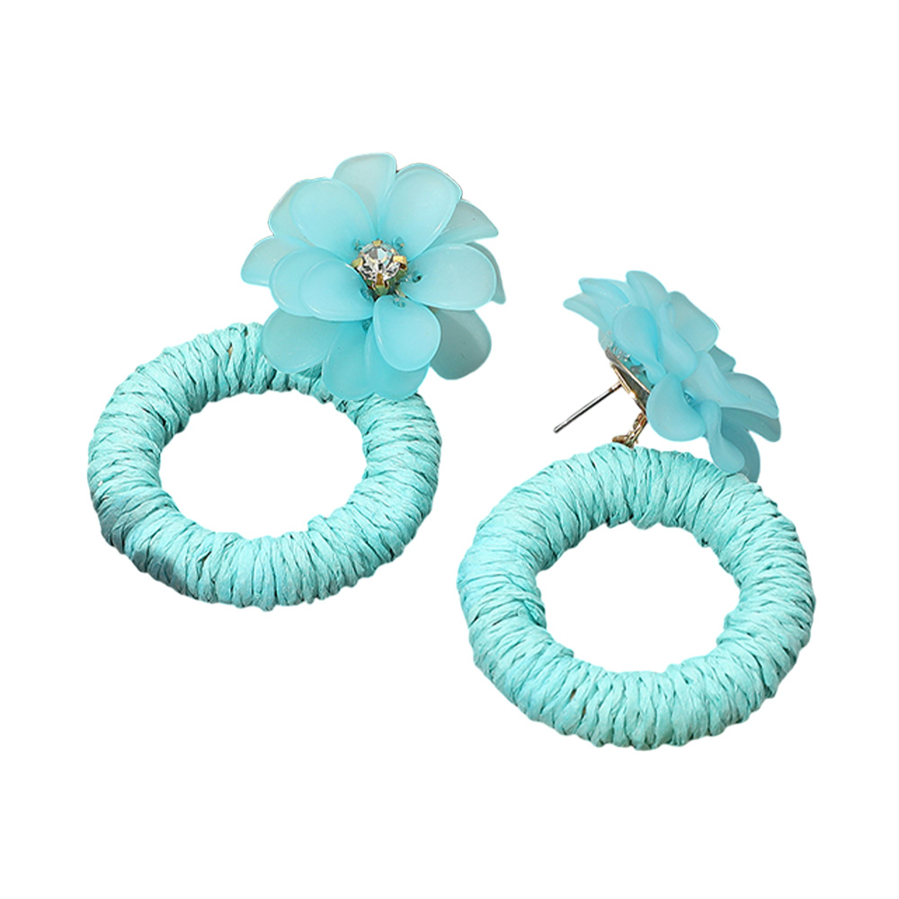 Flower Raffia Hoop Dangle Earrings