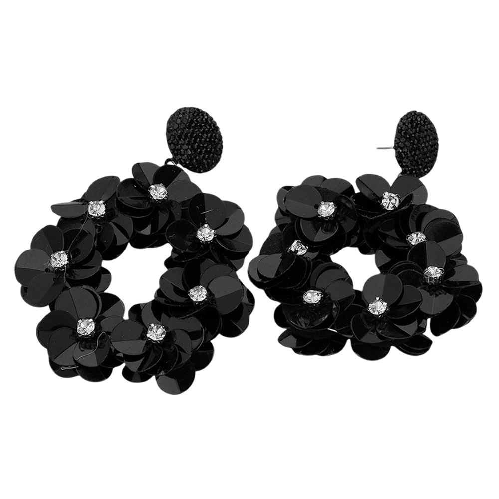 Flower Sequin Wreath Dangle Earrings